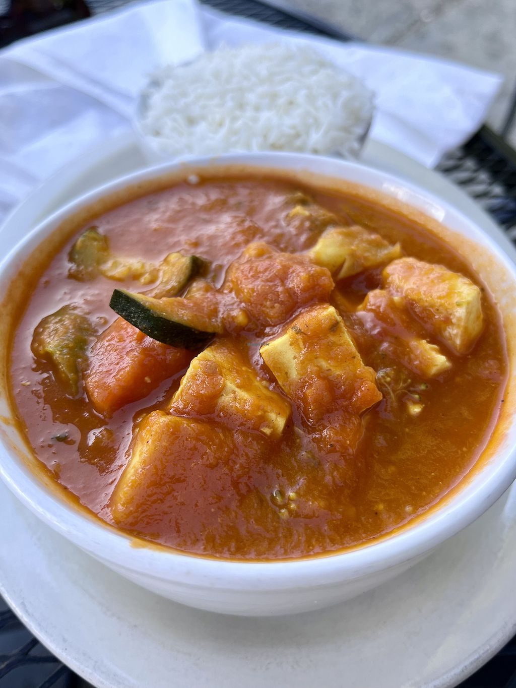 I had to specify what vegan was but there are a handful of options! I ended up having the tofu curry and they gave us all free cups of chickpea lentil soup. It was all delicious and great portions. They have a big patio and we were able to let the dog sit with us.