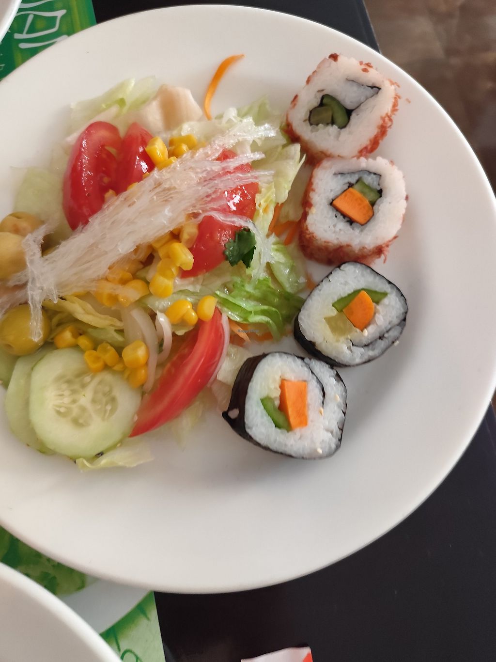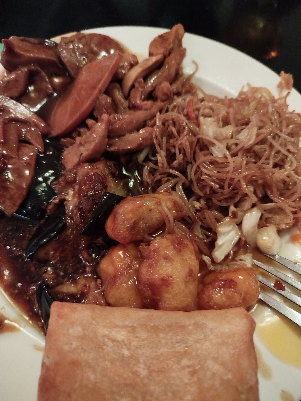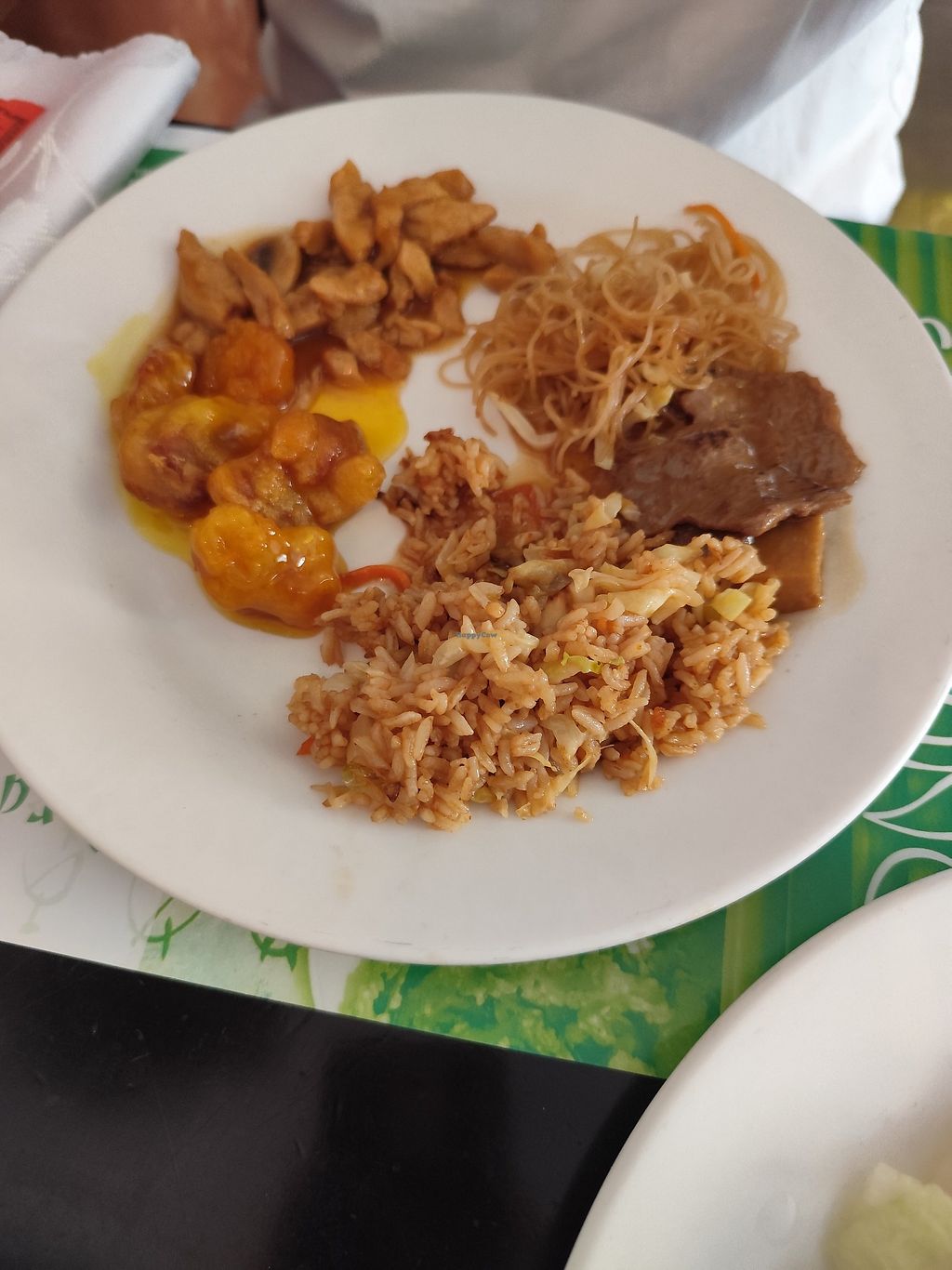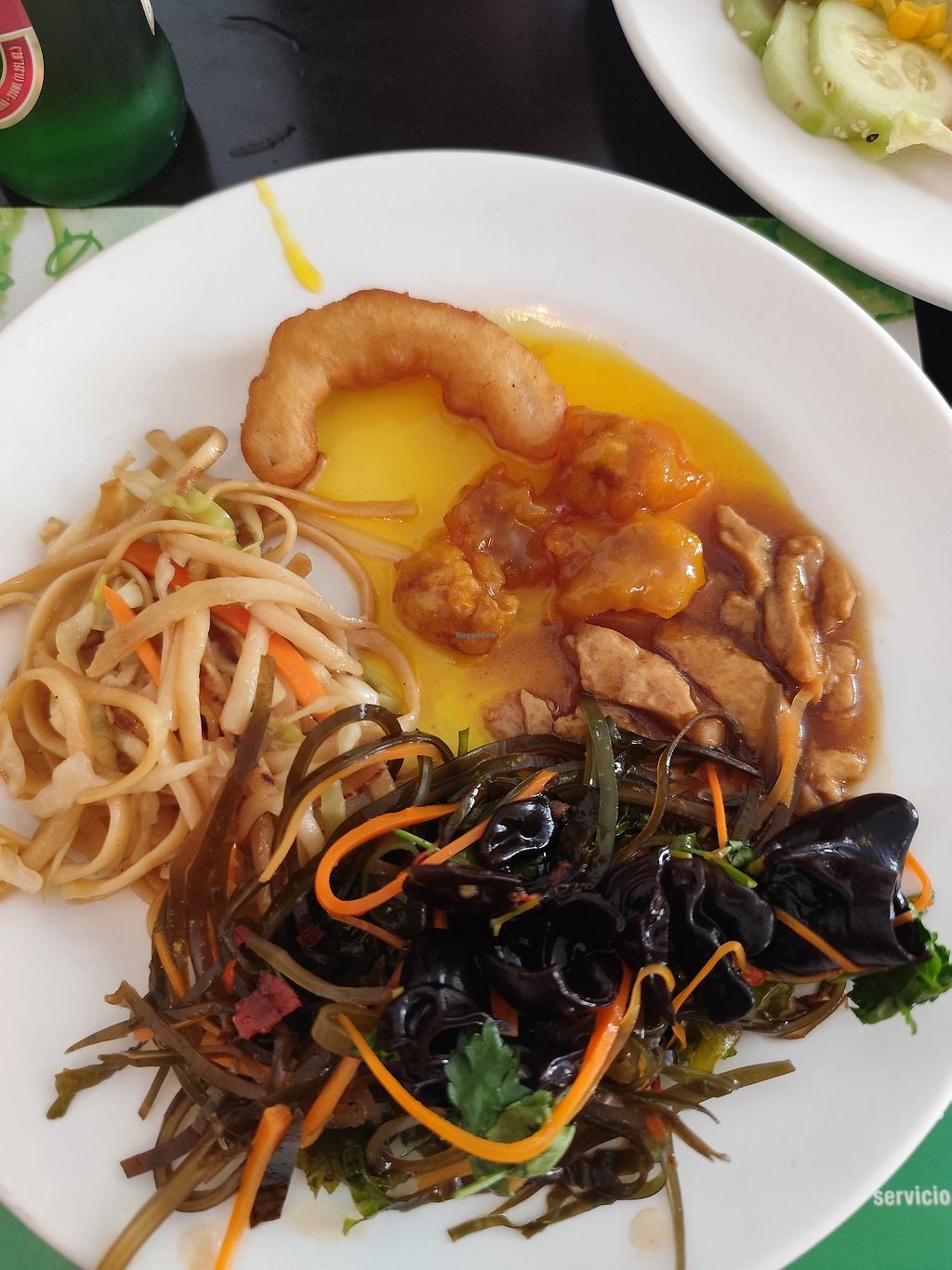 Arroz frito, tallarines, seitan en salsa, cerdo agridulce plant based.…