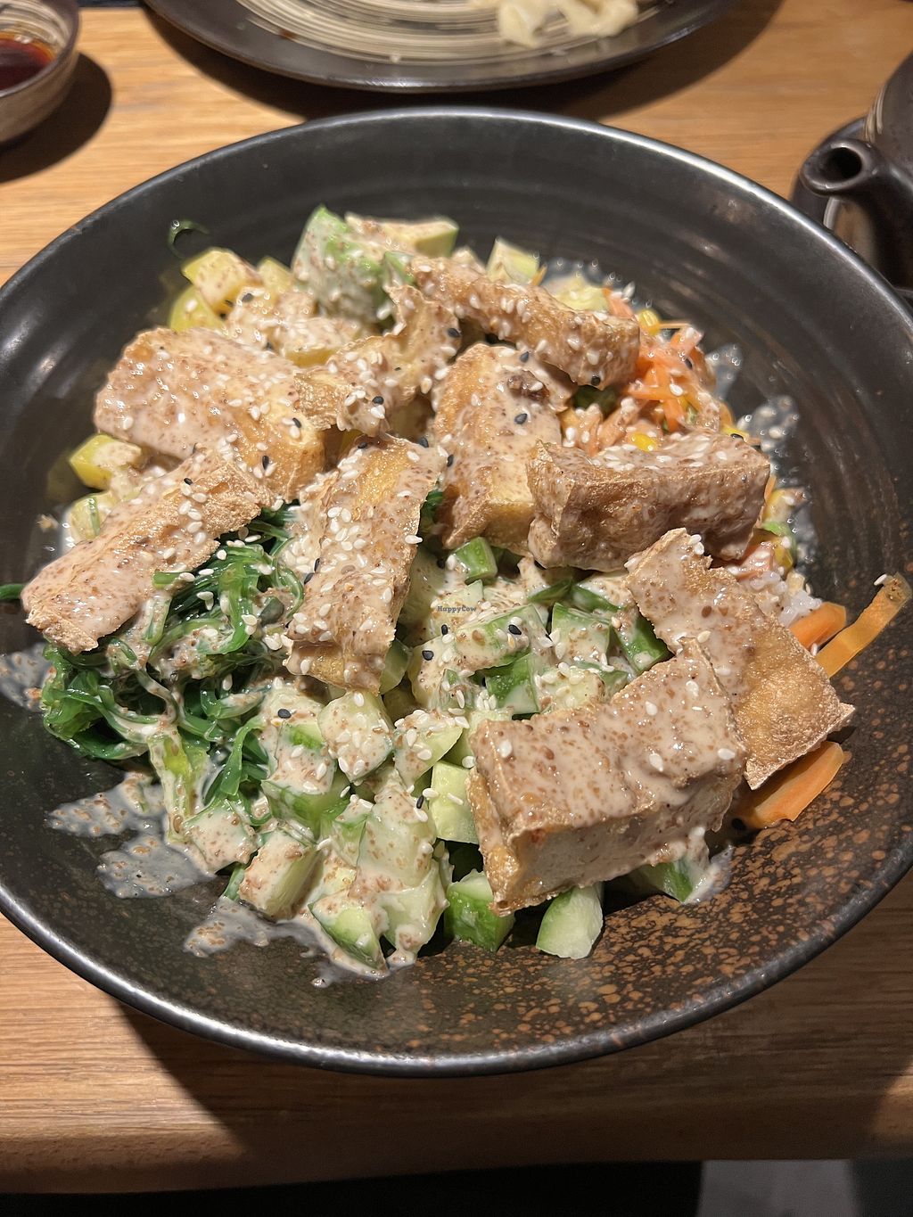 Small selection of vegan-labelled dishes. Some dishes are not labelled correctly. The poke bowl was very large and delicious. The vegan special rolls (sushi) were also delicious. The Pho'nomenal soup was okay. The restaurant is nicely decorated. Unfortunately, the food came with a lot of delay. Some of us almost finished eating, but others not had their food.