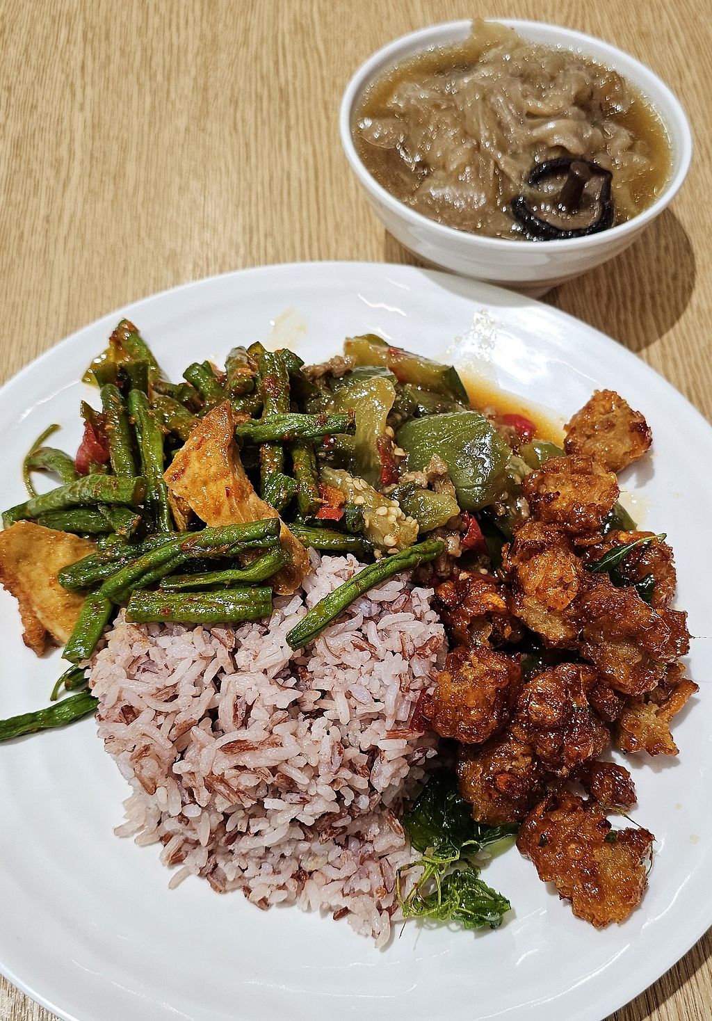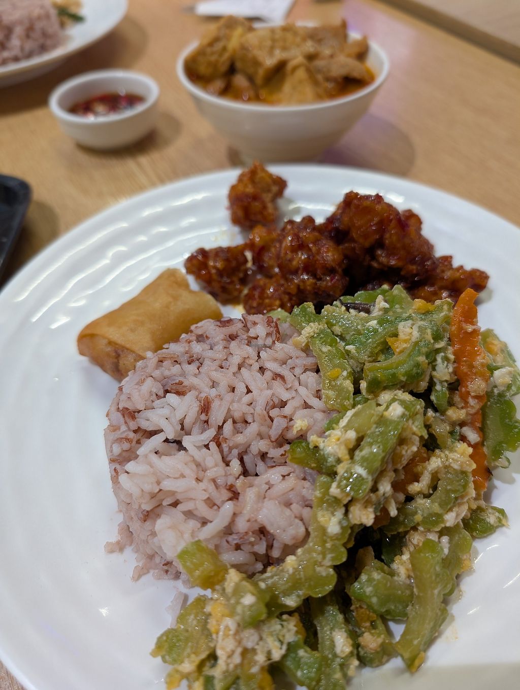 I prefer the old style Thai vegetarian places in food courts and small stalls to the western or fusion places. This new place is exactly what I like. We showed up at the perfect time (11am) as all the food was coming out. Portions were huge for the price. You really cant go wrong here.