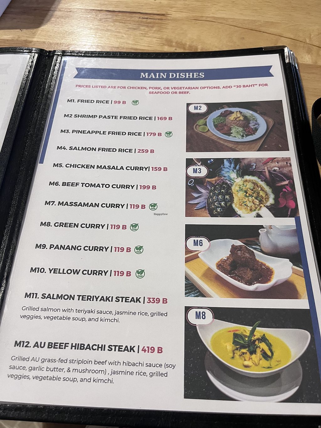 I had the Massaman Curry with Tofu & Rice and it was very very tasty, good portion size and fair price (120 baht)! Clearly marked vegan options. Restaurant is very nicely decorated and its located super conventiently.