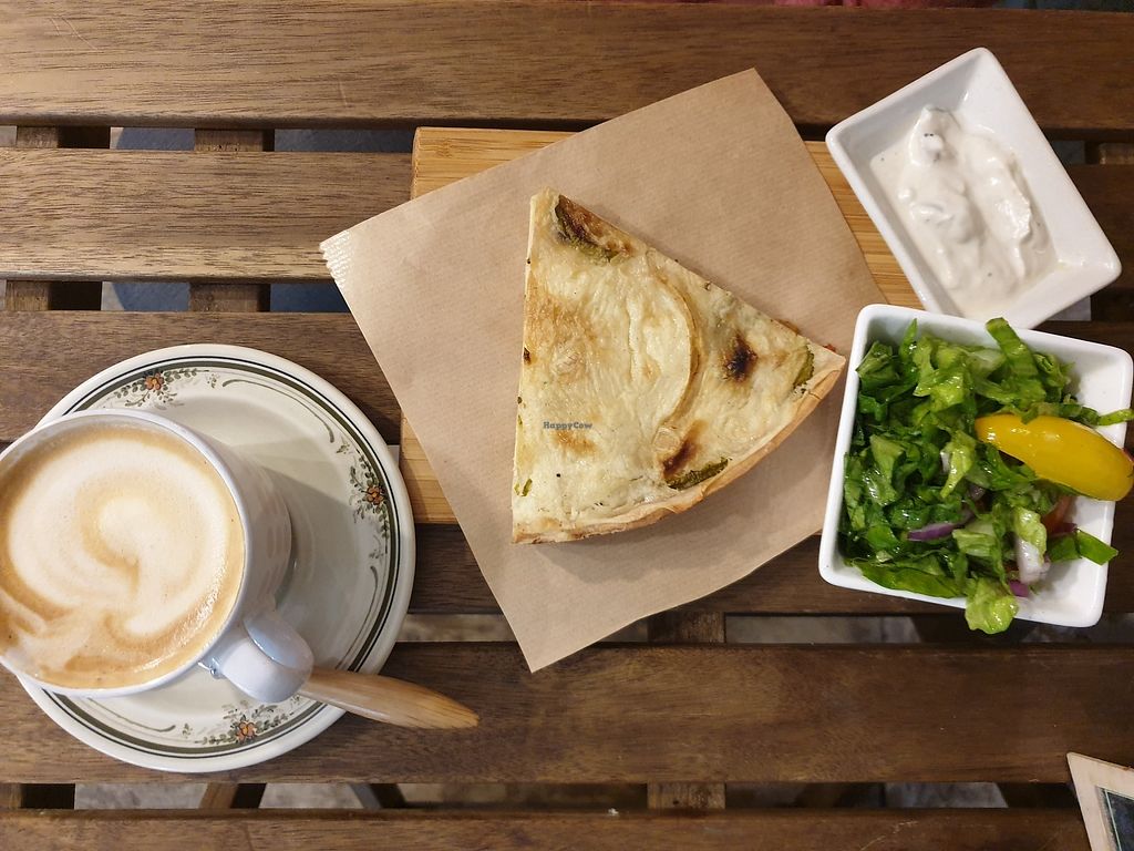 Cozy little cafe that doubles as a flower shop. They have a lot of sweet and savory vegan options, including pastries, muffins, quiches, and cakes. The food is really good, but also quite expensive.