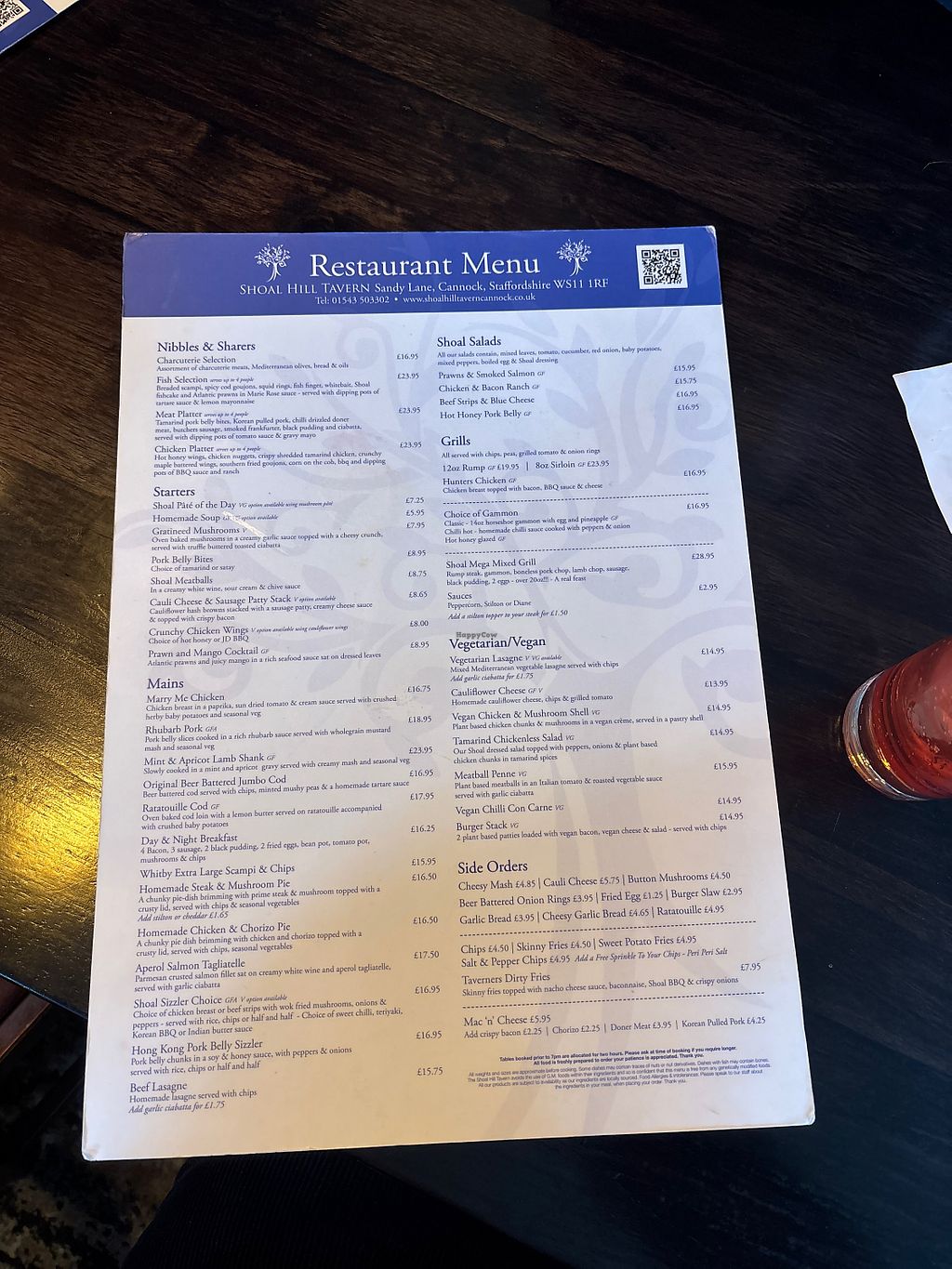 We went to the Shoal Hill Tavern it has a busy but comfortable atmosphere, it is recommended you book a table as it can get very busy. They have an extensive menu with a section for vegan and vegetarian. These include a good choice of starter , mains and desserts.