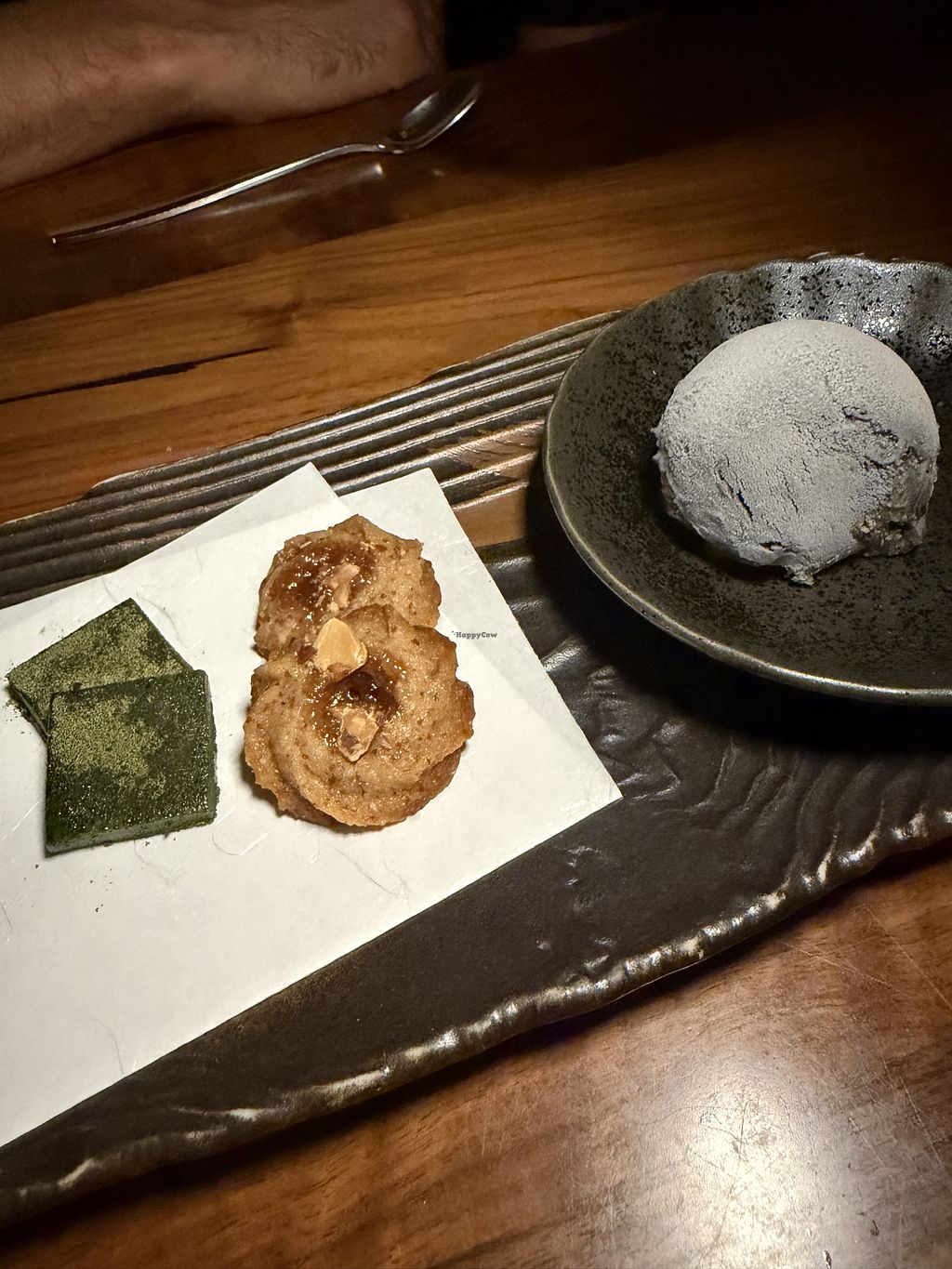 Black sesame ice cream, miso cookies, chocolate matcha truffles