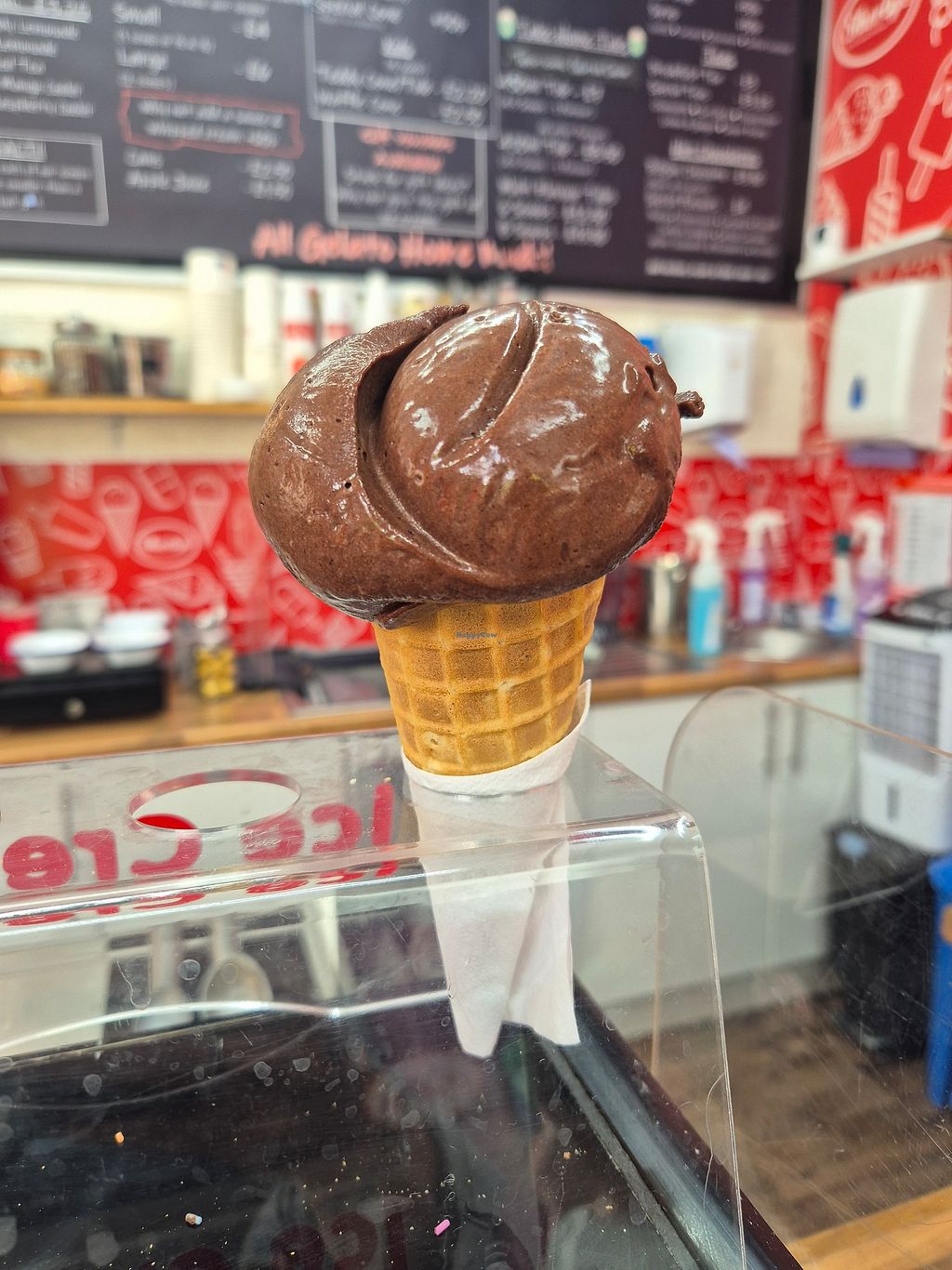 What a surprise to find an ice cream shop in Scotland so far from a city selling vegan friendly ice cream, times are certainly changing for the better! On offer when I visited were Lemon, Cappuccino & Walnut and Chocolate Nero. I had the latter 2 in a cone, was very 😋