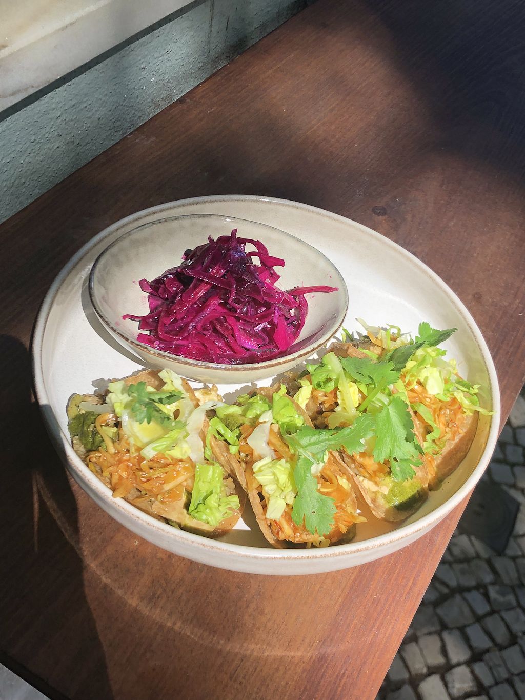 A recently opened female owned spot right next to Jardim de Estrala. Very friendly staff and wonderful menu. We had the tacos and sharawarma wrap and they were both delicious! Very relaxed atmosphere too with a nice bar area. A great spot to come spend an afternoon.