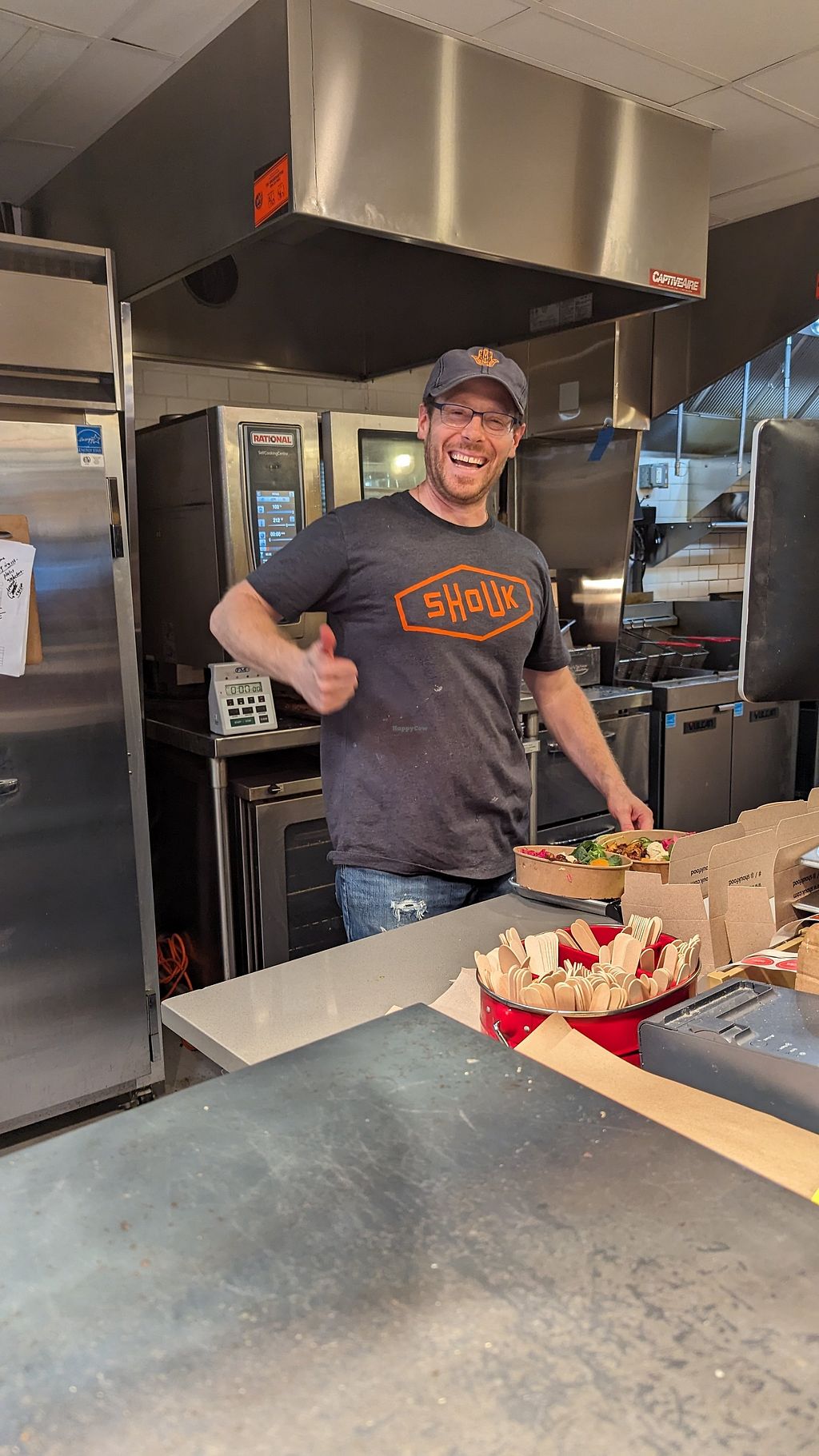 Great to see the Shouk restaurants thriving. Today working in the food prep area, we were served by none other then