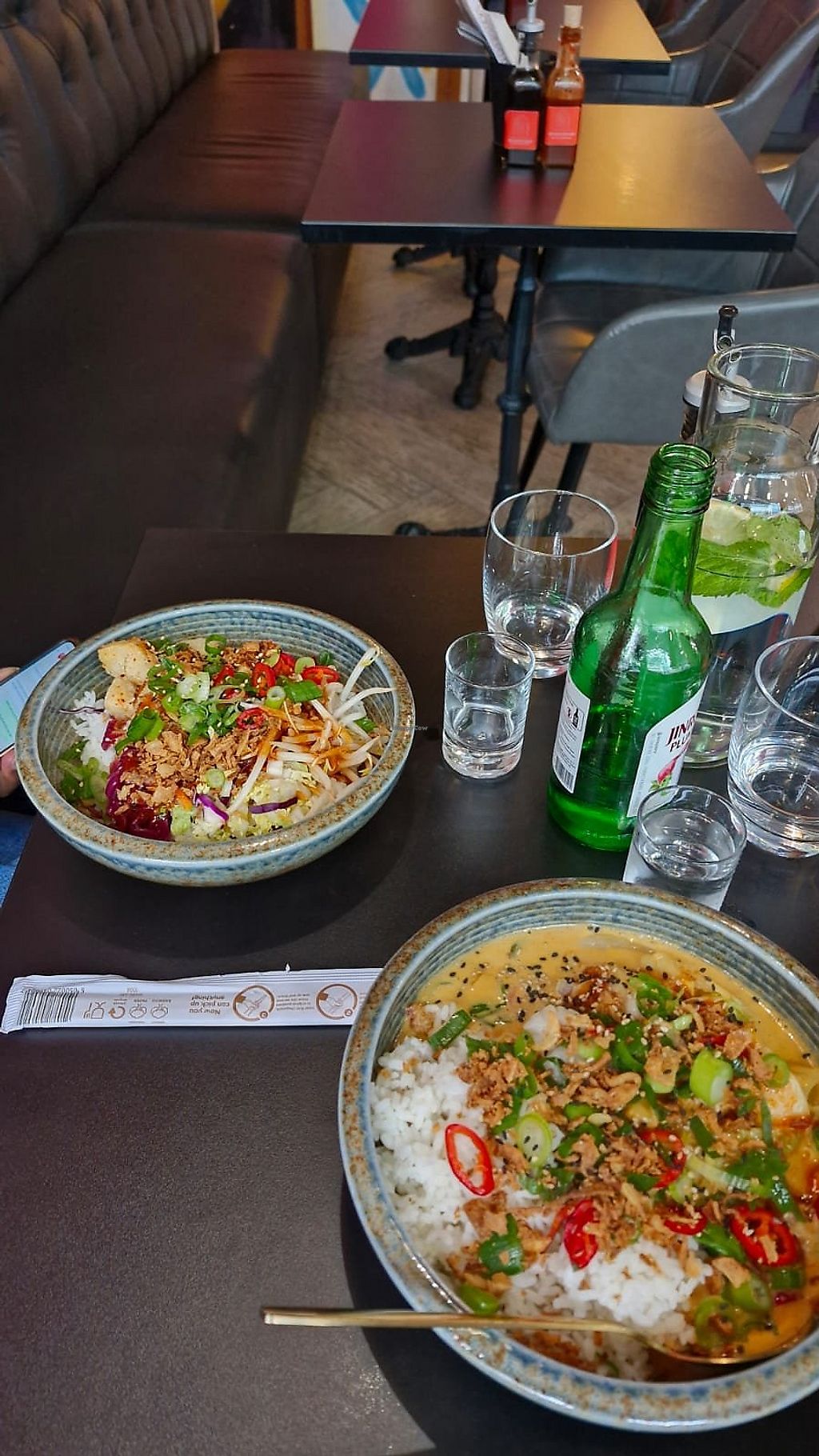 The veggie gyzoas, kimchee pancakes and bang bang cauliflower