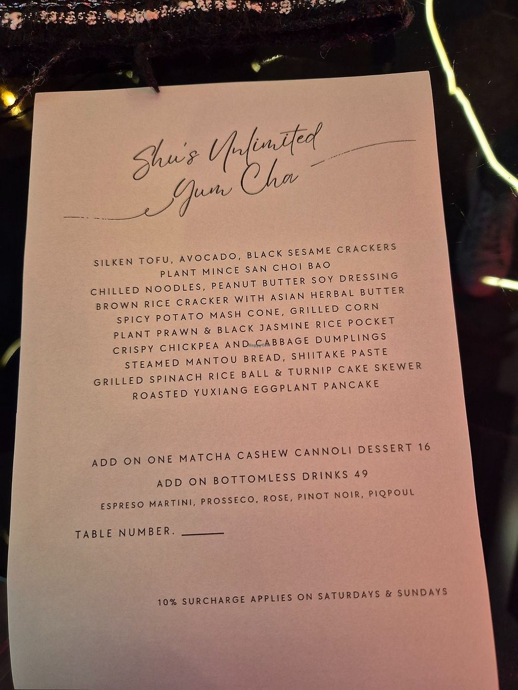 We loved the cool ambience, attentive staff, and delicious food. Our group, which included a few non vegans, thoroughly enjoyed the 10 course degustation. The very innovative dishes were presented exquisitely. We are looking forward to returning back again to try their lunch yum cha and Shu Lanka degustation.