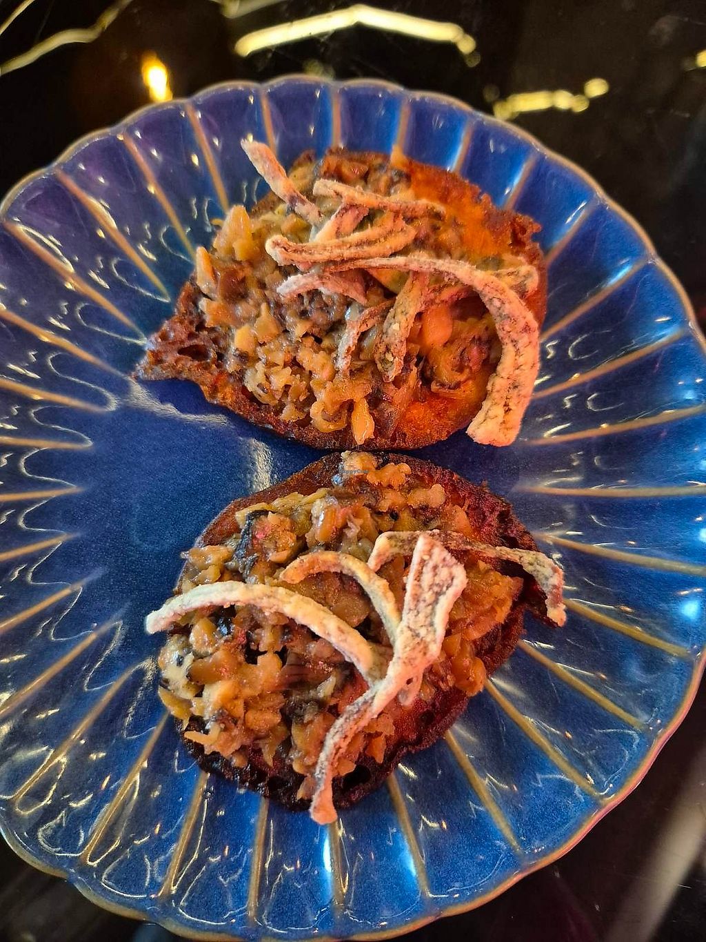 The negatives: Out of the 10 courses, I could honestly say I enjoyed half, with the remainder underwhelming, odd, or unpleasant in texture, with a few too many courses in a row quite heavily seasoned with chilli/pepper and nothing to cool the fire with. The finale, a dessert course, felt like an afterthought...a base of solidified coconut cream (no added flavouring) topped with a sweetened/jammy woodear fungus (or similar). At $95 per head, I expect more...but yay for vouchers 😅