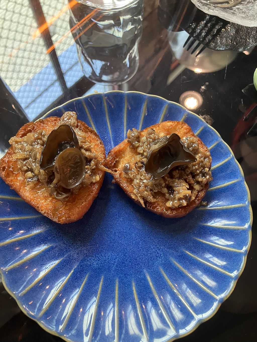The negatives: Out of the 10 courses, I could honestly say I enjoyed half, with the remainder underwhelming, odd, or unpleasant in texture, with a few too many courses in a row quite heavily seasoned with chilli/pepper and nothing to cool the fire with. The finale, a dessert course, felt like an afterthought...a base of solidified coconut cream (no added flavouring) topped with a sweetened/jammy woodear fungus (or similar). At $95 per head, I expect more...but yay for vouchers 😅