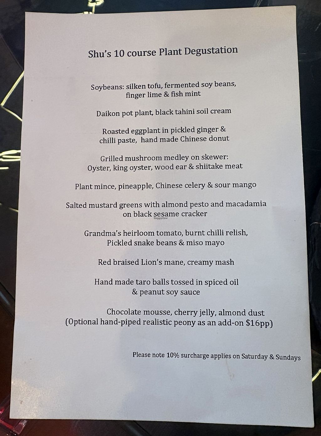 Vegan fine dining, so good. We had the 10 course degustation, amazing dishes such a good night out. The grilled mushroom skewers, and plant mince and pineapple were stand outs in a great selection of meals.