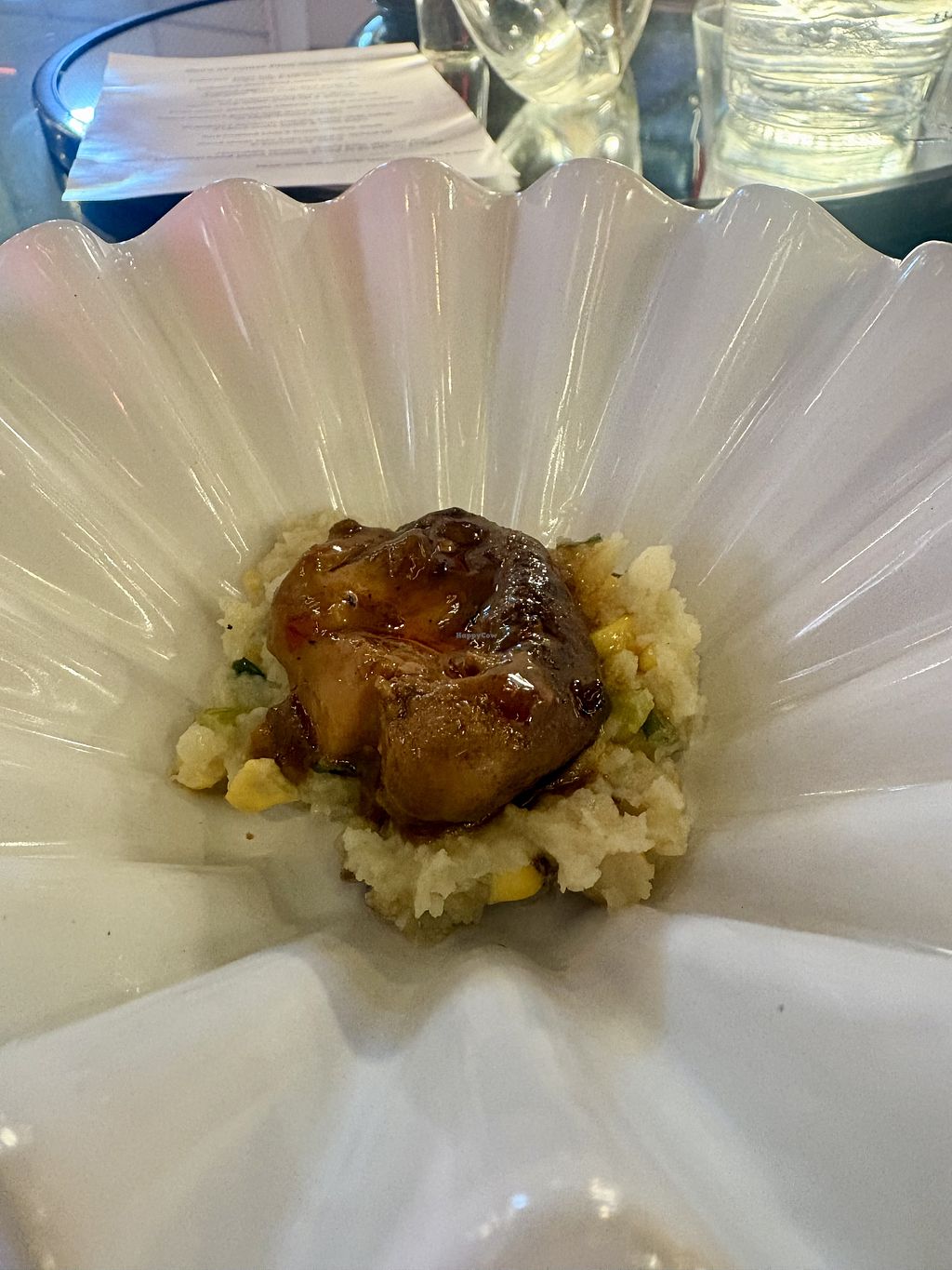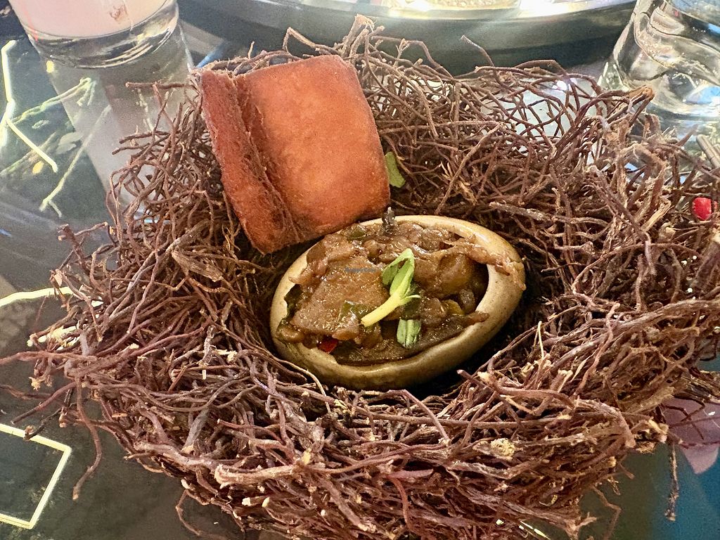 The negatives: Out of the 10 courses, I could honestly say I enjoyed half, with the remainder underwhelming, odd, or unpleasant in texture, with a few too many courses in a row quite heavily seasoned with chilli/pepper and nothing to cool the fire with. The finale, a dessert course, felt like an afterthought...a base of solidified coconut cream (no added flavouring) topped with a sweetened/jammy woodear fungus (or similar). At $95 per head, I expect more...but yay for vouchers 😅