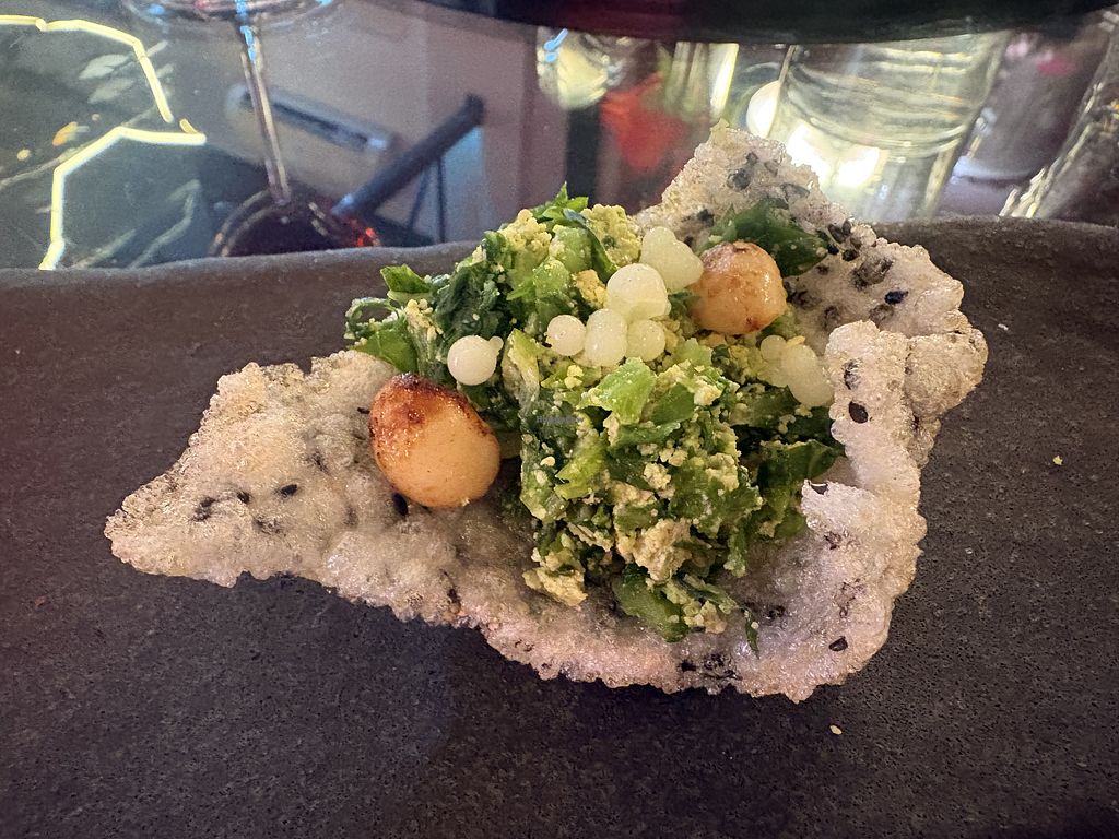 - silken tofu, avo, black sesame cracker: AMAZING, perfect balance of flavours (sweet, salty, chilli), didn't expect this to be my favourite dish