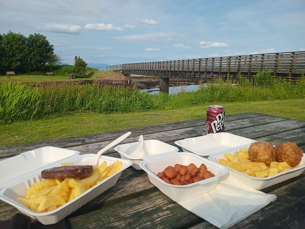 We were so so so pleasantly surprised by how many vegan options there were at this chippy! The chips were lovely, we were a bit surprised the sausages weren't battered but we still really enjoyed them!