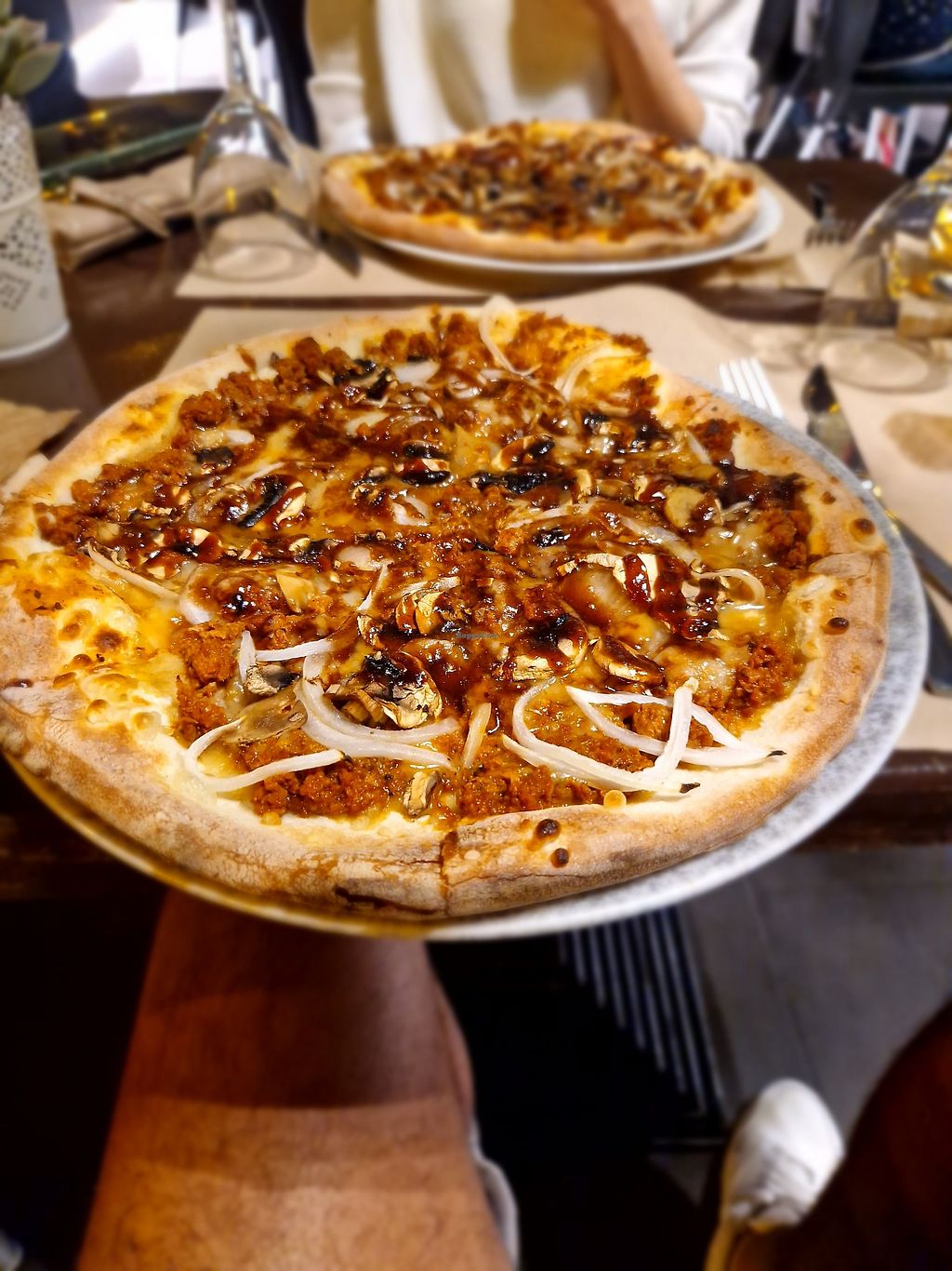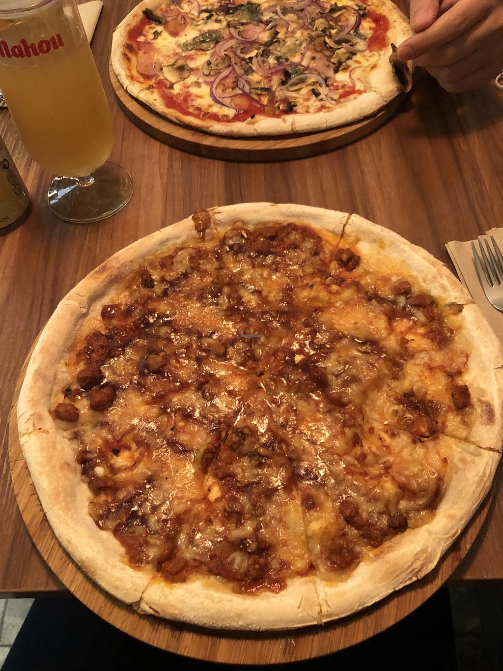 Pizza vegana de boloñesa vegana y queso vegano. Un 10!