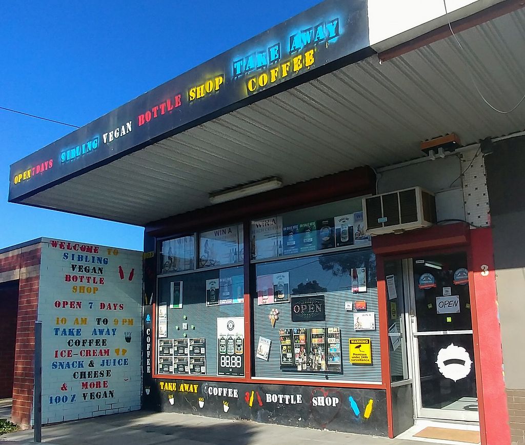 Siblings has a wide selection of wine, beer and spirits - all verified vegan. But that's not all! Grab frozen pizza, field roast, chips, ice-cream , sausages, cheeses, and chocolates! Plus fresh hot barista made coffee. No need to read labels - everything is vegan.