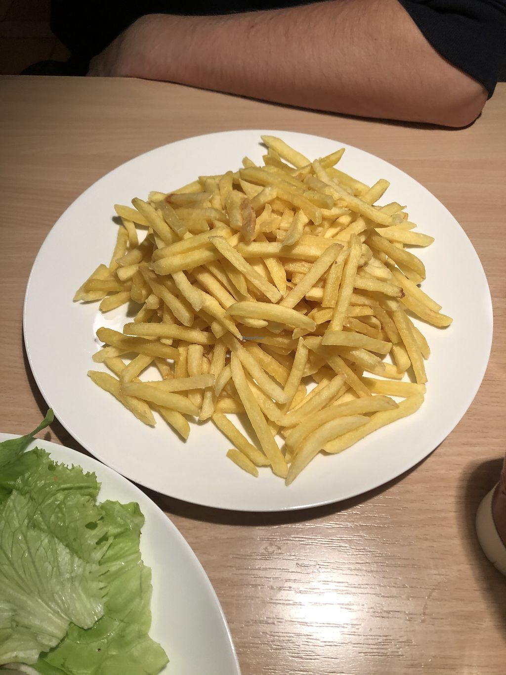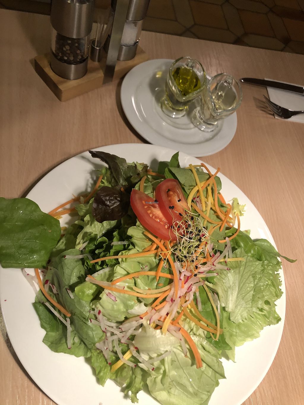 The restaurant offers 2 vegan options: french fries & a red thai curry w planted chicken. We asked for a salad w oil & vinegar too. Very friendly staff, but limited options. Good for a snack for the desperate, hungry hiker.