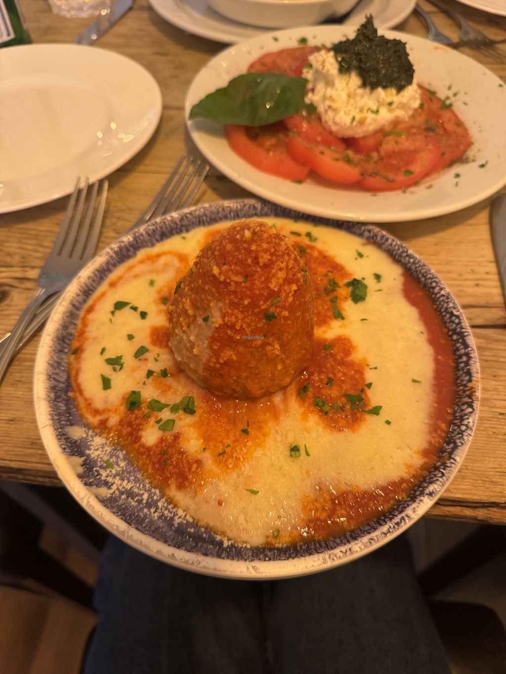 Great food. Lots of vegan options - there’s a separate vegan menu. Authentic Italian vibe. Had meatballs, garlic bread, tiramisu and an aperol spritz! Will definitely be back.