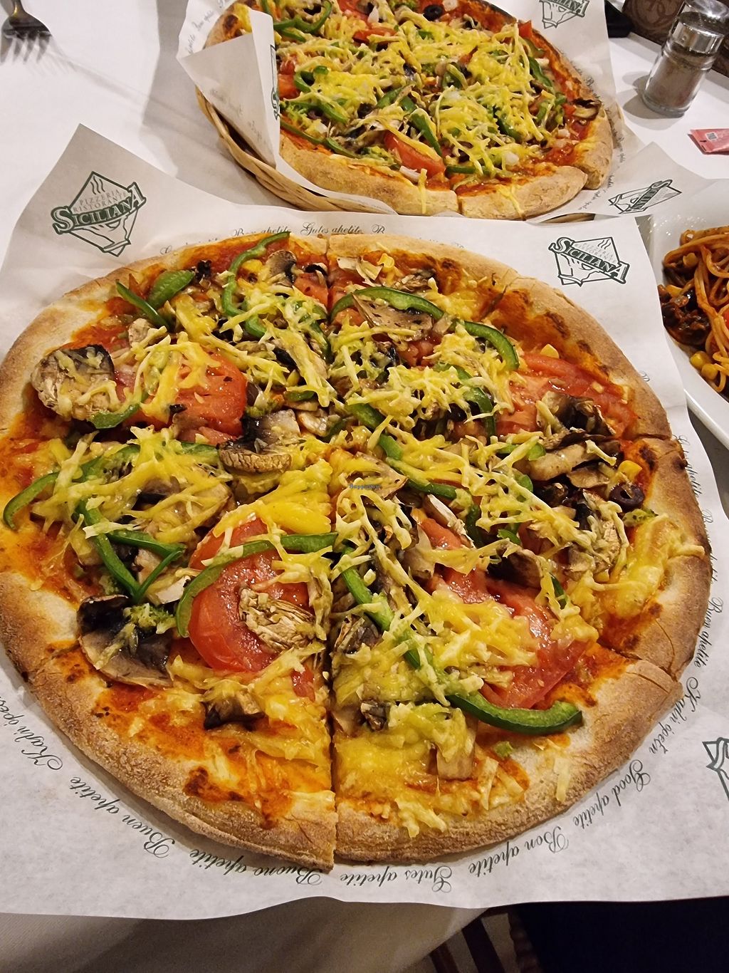 Knuspriger Teig, ordentlich Belag und veganer Schmelz ... auch bei der Pasta gibt es nicht nur gefühlt trockene Nudeln, sondern reichlich Sauce und Gemüsebeilage. Absolut empfehlenswert!