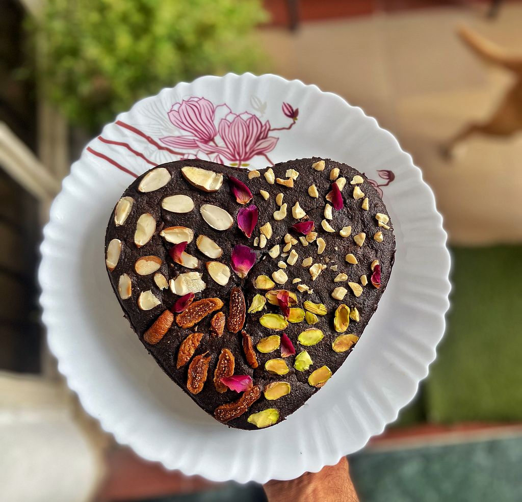 Rich dry fruit brownie. Made using oat flour, olive oil, dates for sw…