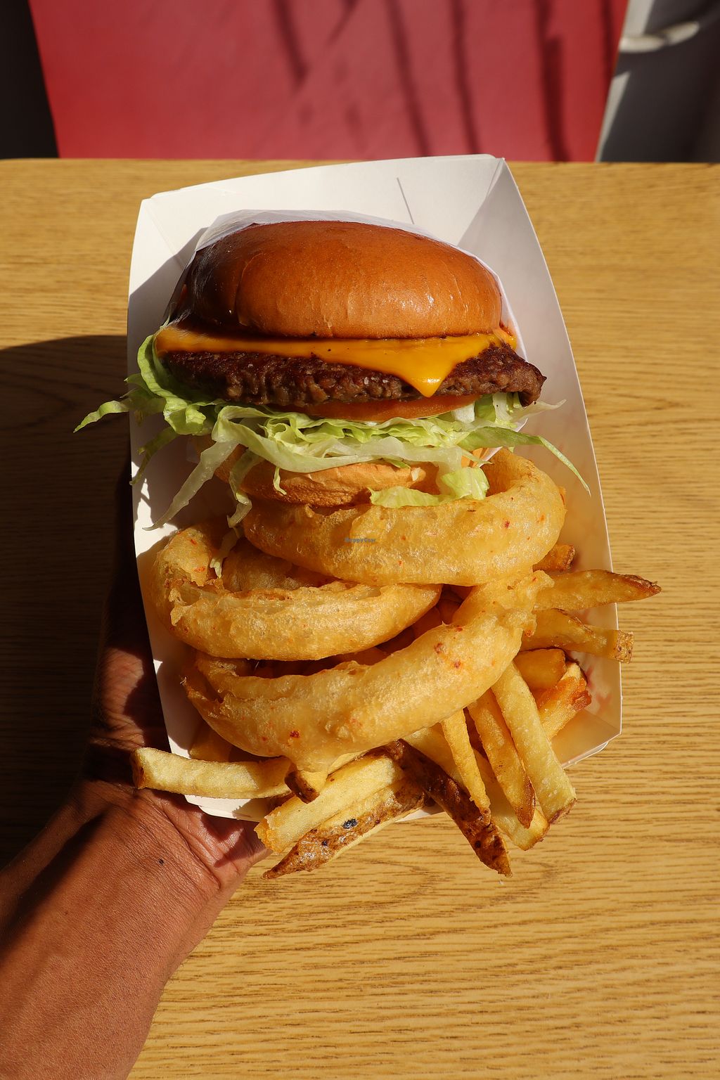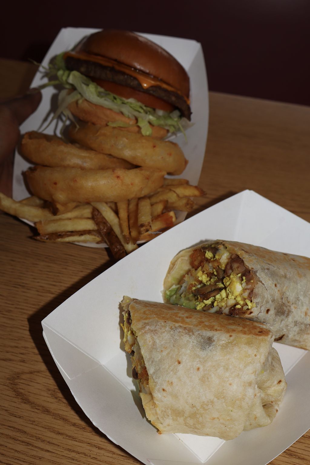 Ordered the vegan smash burger, onion rings, and vegan dipping sauce. The burger was crisp, well seasoned, and saucy. Just how I like it! The onion rings were battered and fried to perfection. And the vegan dipping sauce was delish! I'll be back!!