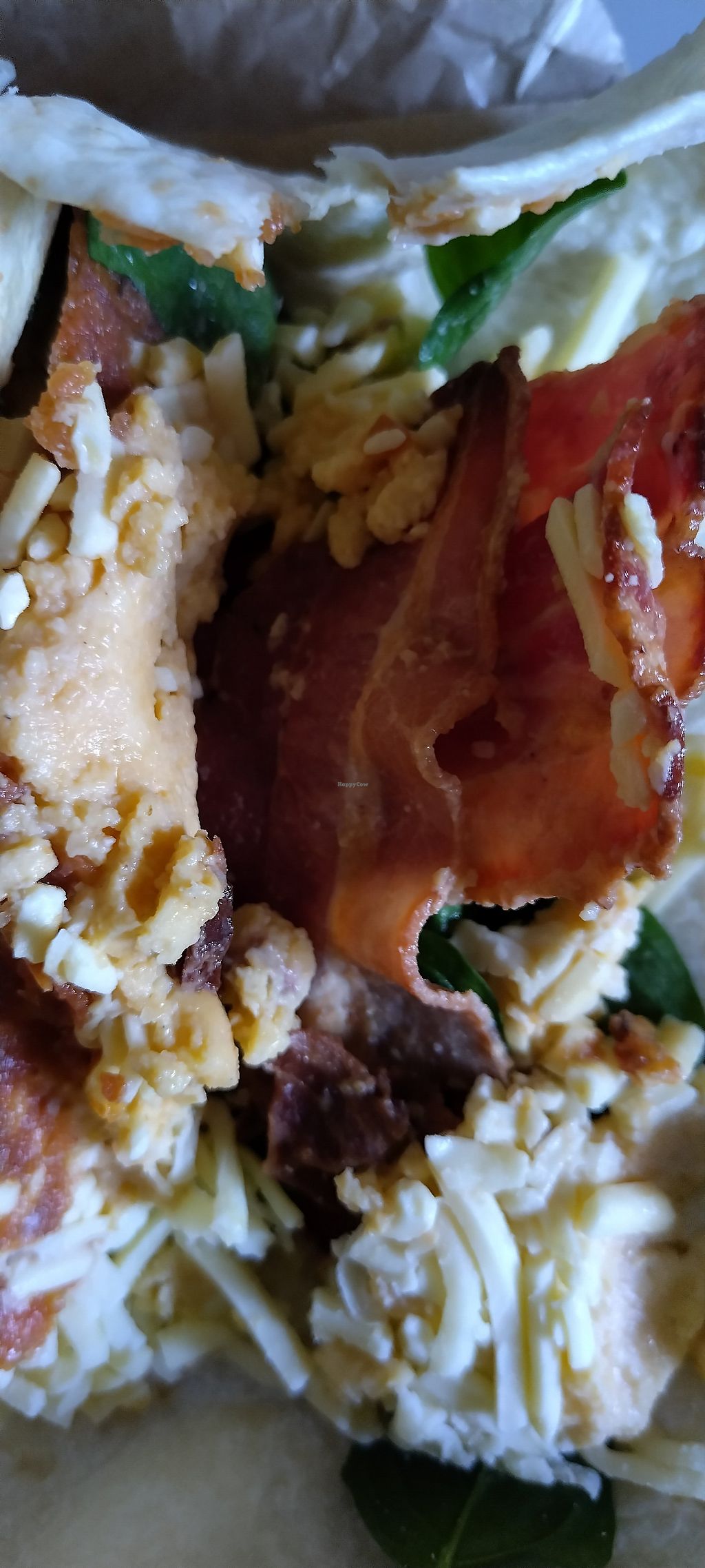 There's just one vegan option here. A roast veggie wrap in flatbread. Got it as a takeaway and 50km away I discovered I had been given bacon, egg and cheese.
