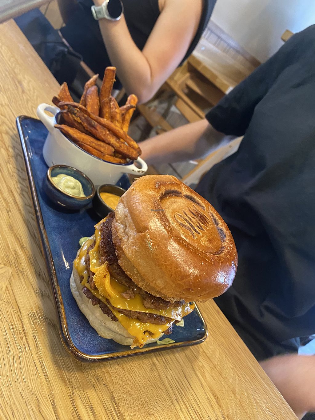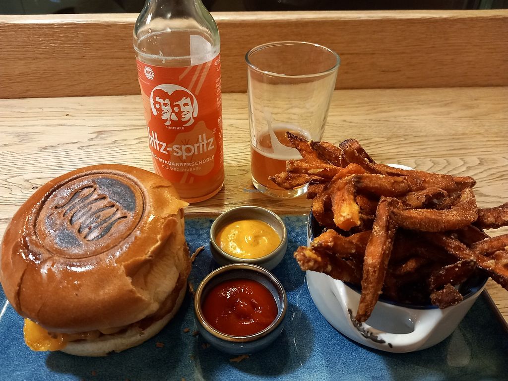 Freitag Abend war’s sehr gut besucht - aufgrund dessen war das Essen auch eher Slow statt Fast Food. Das Personal war trotz des Ansturms super freundlich und routiniert. Der smashed Burger war ausgezeichnet, auch das Rösti war eine gute Wahl, lediglich der Vegean Burger hat uns leider nicht überzeugen können. Fries on Point. Das Eissandwich kommt im Burger Bun, was überraschend gut geschmeckt hat. Die Brioche Brötchen wurden während unseres Besuchs von einer französischen Bäckerei frisch geliefert. Herrlich.