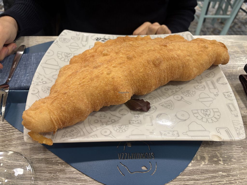 Pizza fritta con pomodoro e mozzarella veg