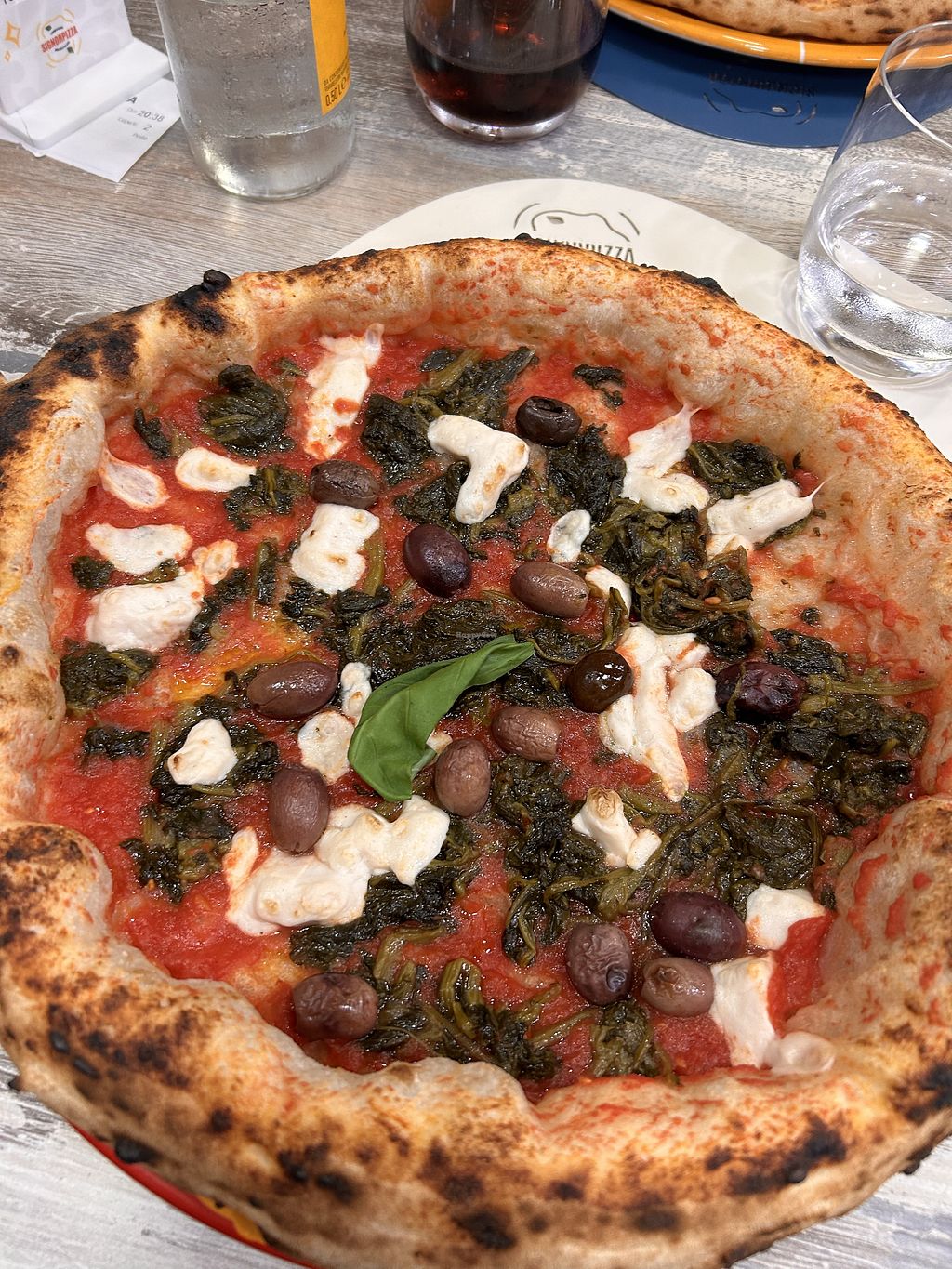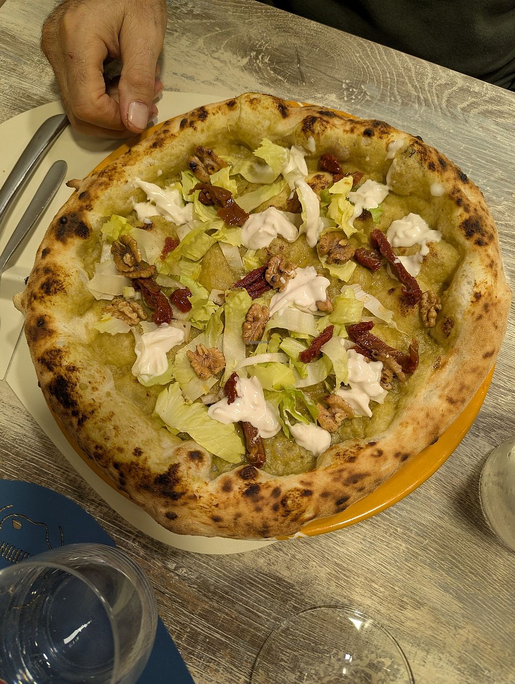 Pizza con crema di melanzane, friarielli, mozzarella veg, chips di mel…
