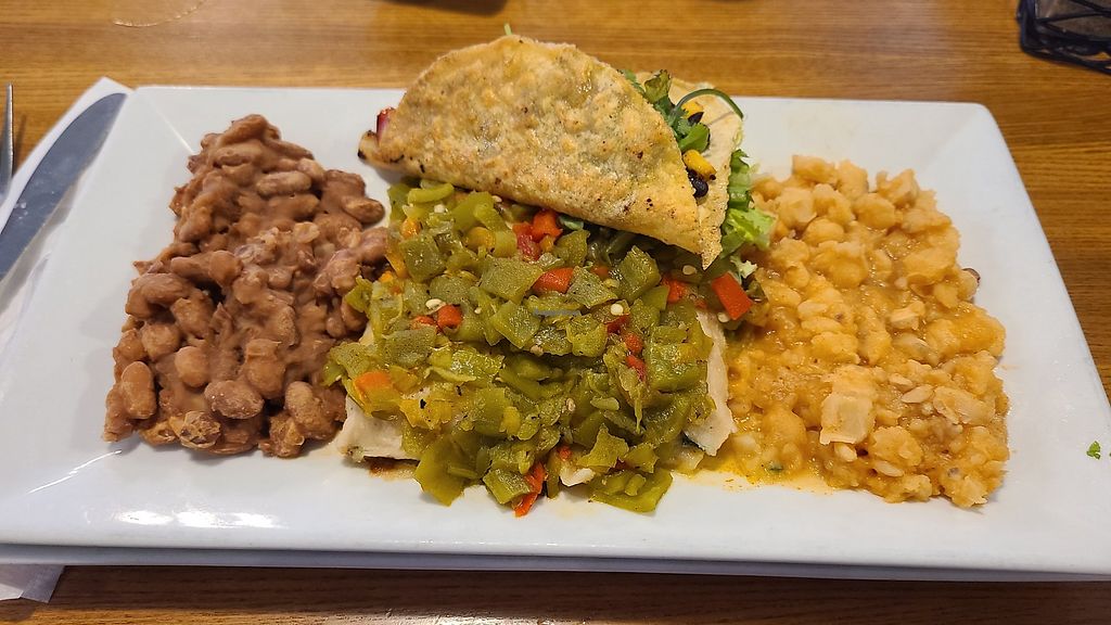 We had vegan tamales and vegan tacos paired with beans and pozole. The food was delicious and the staff was friendly and helpful.