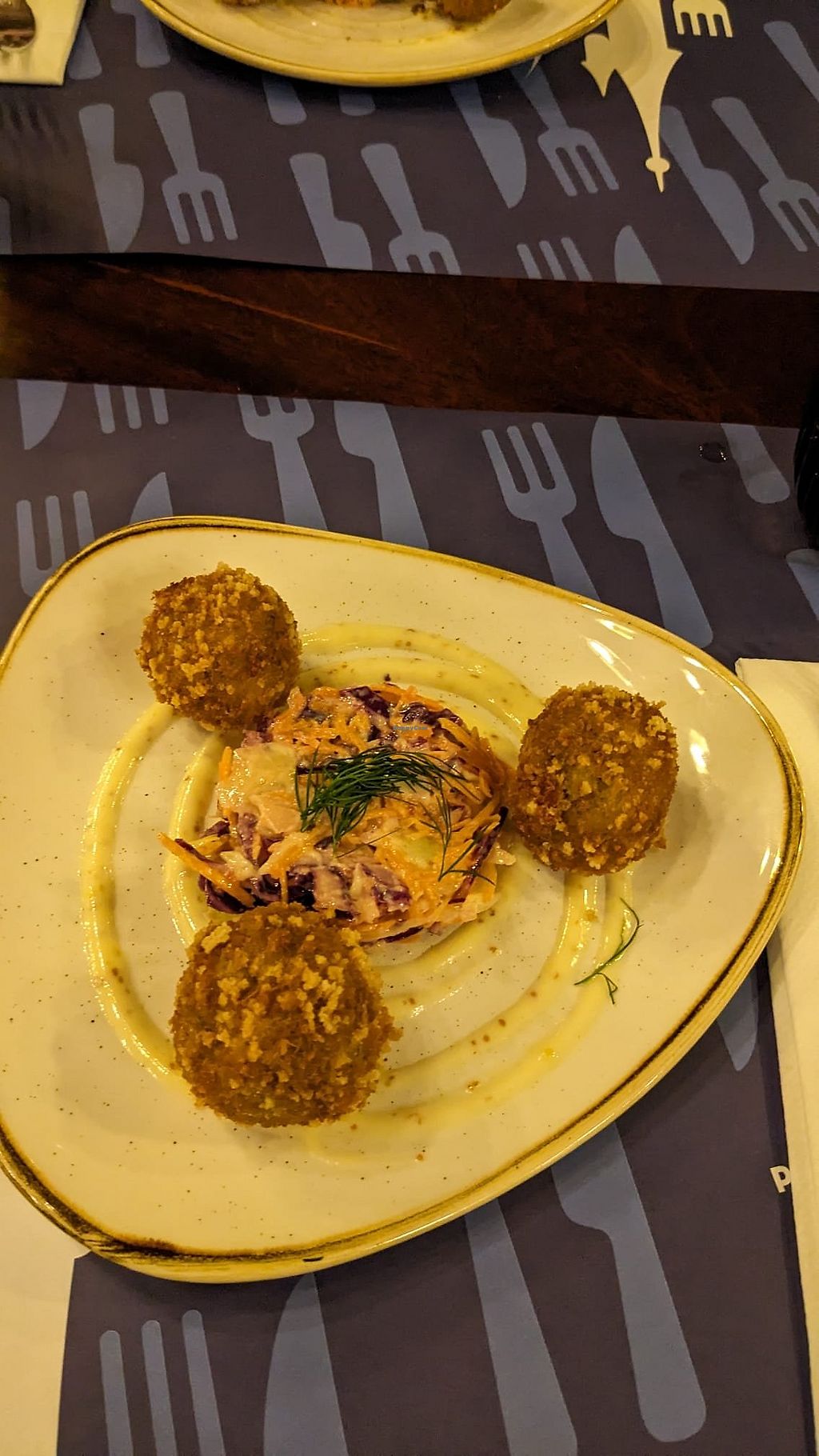 We had the three course vegan menu. While the starter (coleslaw and beignets) was good, the main course didn't do much for me. The dessert was nice, but too sweet and filling. The staff were kind and attentive.