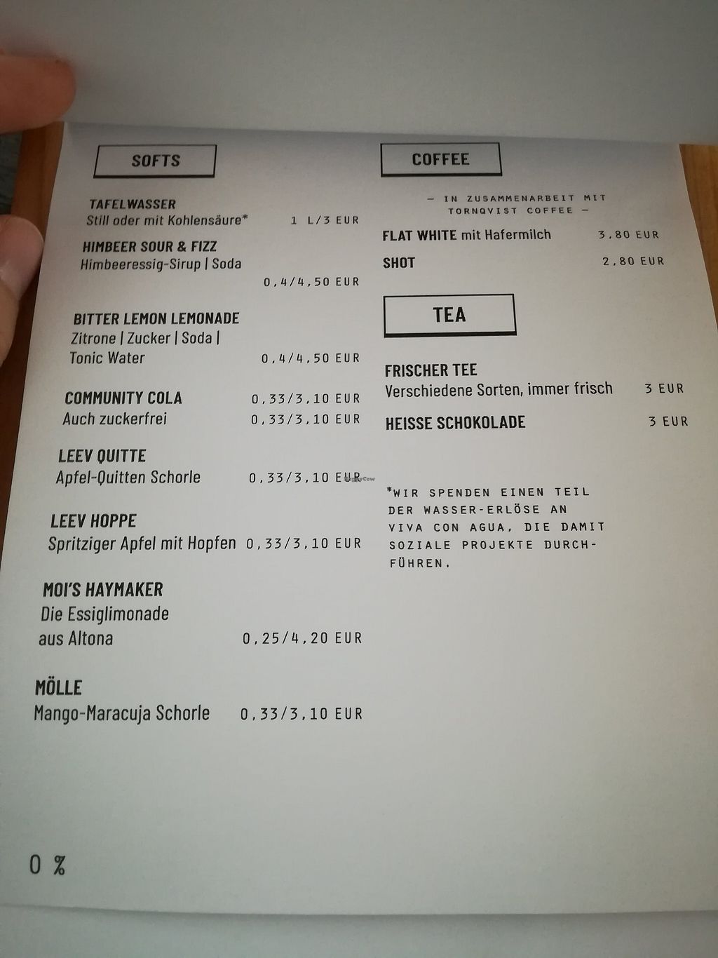 Menu as listed from the outside