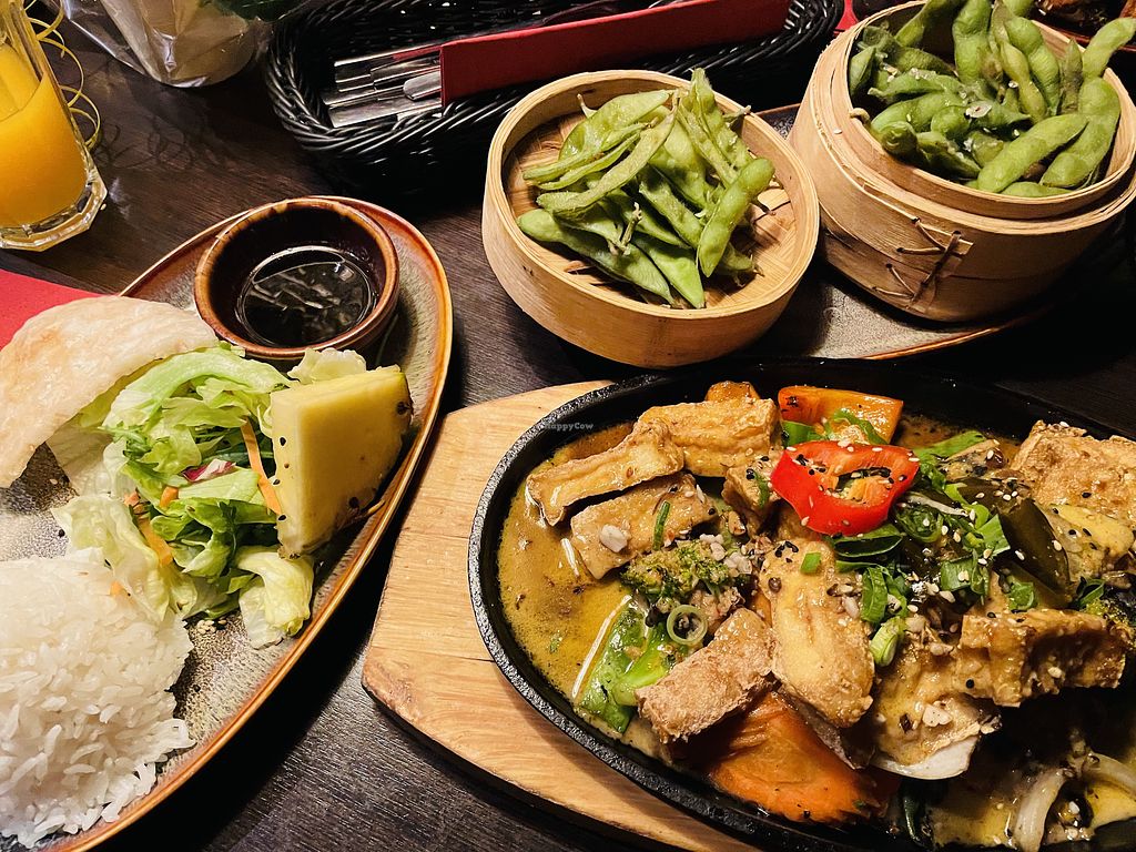 Serves meat, vegan options available. Southeast Asian cuisine with clearly labelled vegan options on the menu including fried tofu, vegan roll, edamame, glass noodle salad, papaya salad and various pho. Has a big garden outside and is spacious inside. Open Mon-Wed 12:00-21:00, Fri-Sun 12:00-21:00.
