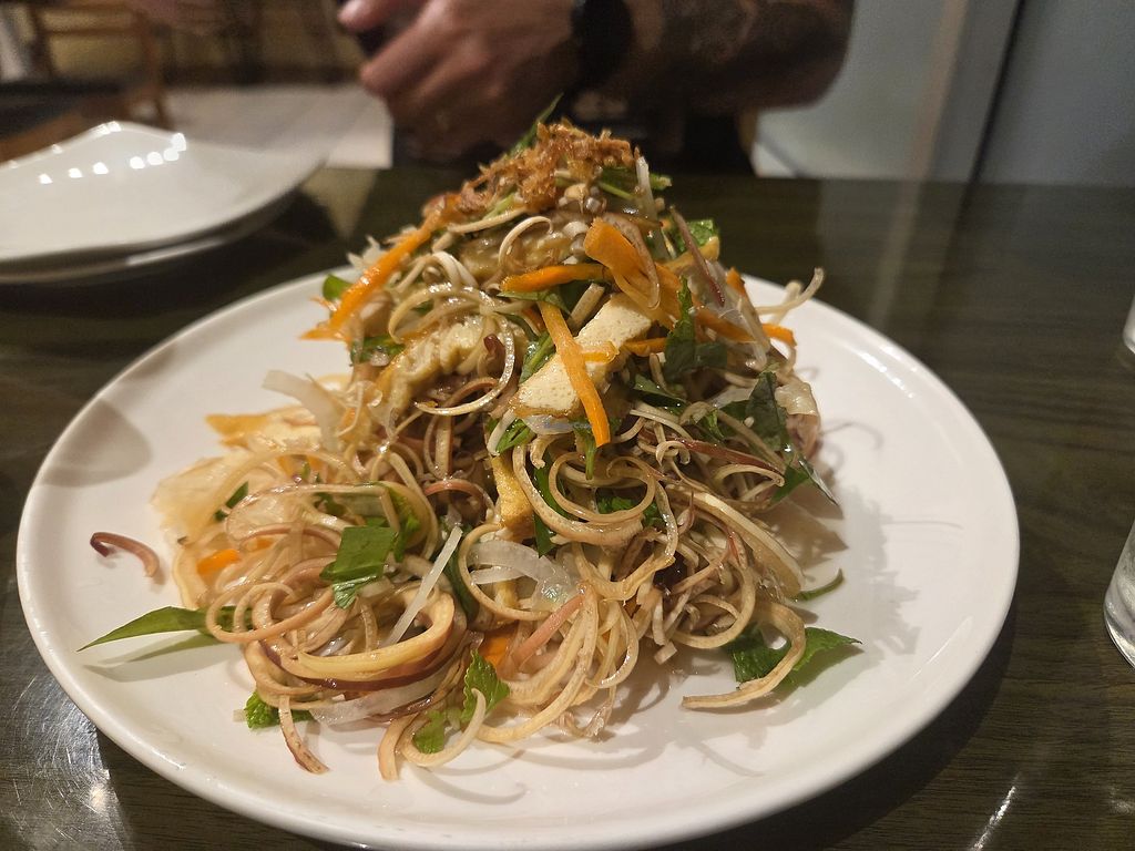 I love a vegan Asian spot. They have an extensive menu, and my favorite was the banana flower salad. However, I was also happy to see moco loco since it's a Hawaiian dish (white rice, patty, gravy).