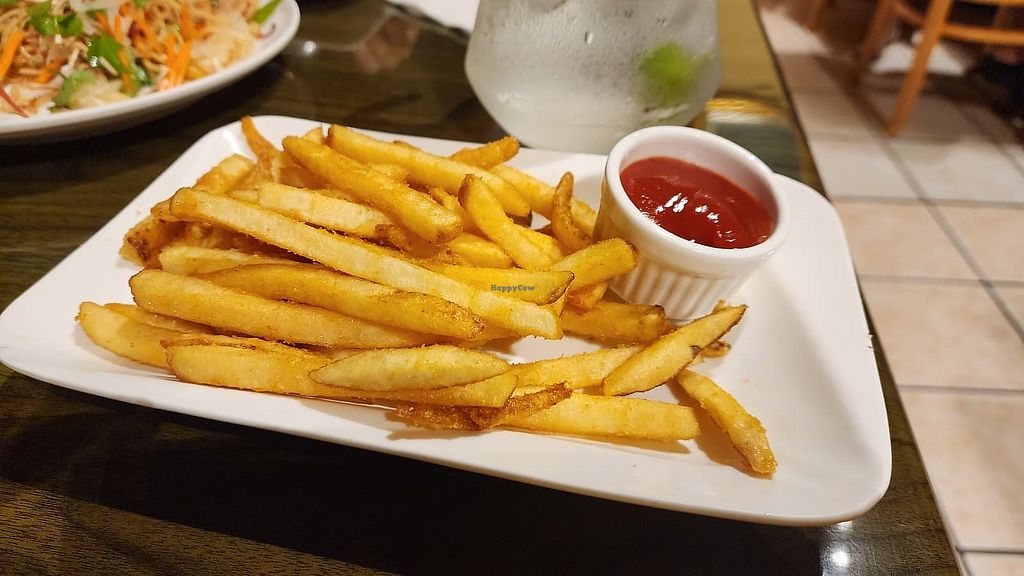 This is often our go to lunch spot because it has so many different dishes available, from Asian to Italian. They have vegan ice tea, and their banana flower salad is absolutely a must on my list. I often crave it and I've been known to order 2 at once just to get my fill. Their fake fish is some of the best on the island. Their tempura is so good, especially the chunks of mushroom. Their bean curd rolls are unusual and delicious, except that they're rarely available because apparently it's a specialized dish that takes a long time to make, so I'm not sure if they run out quickly or they just don't make it most days.