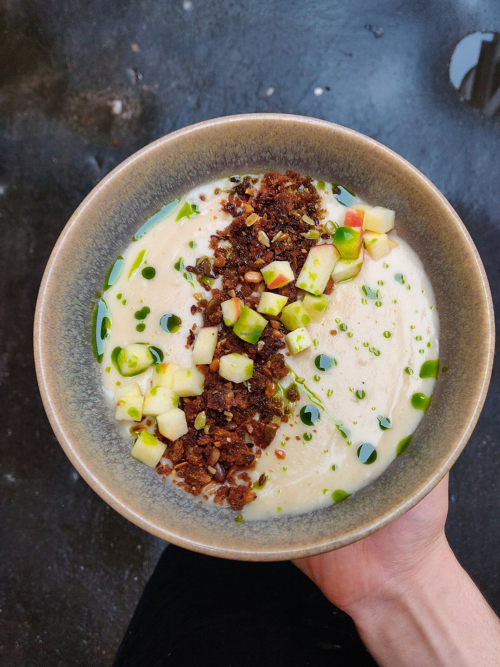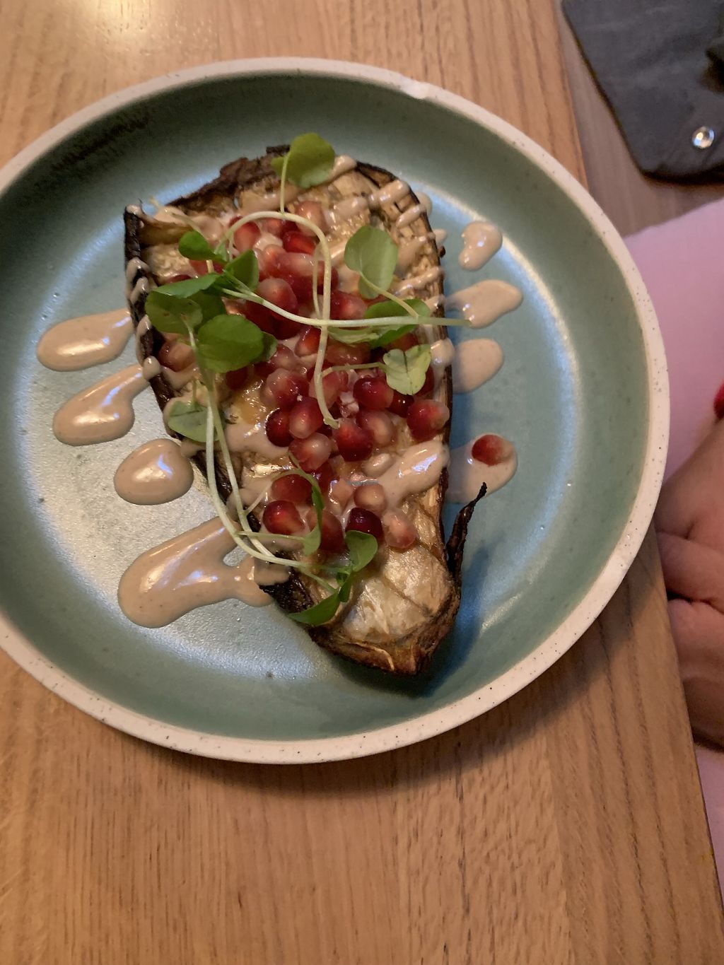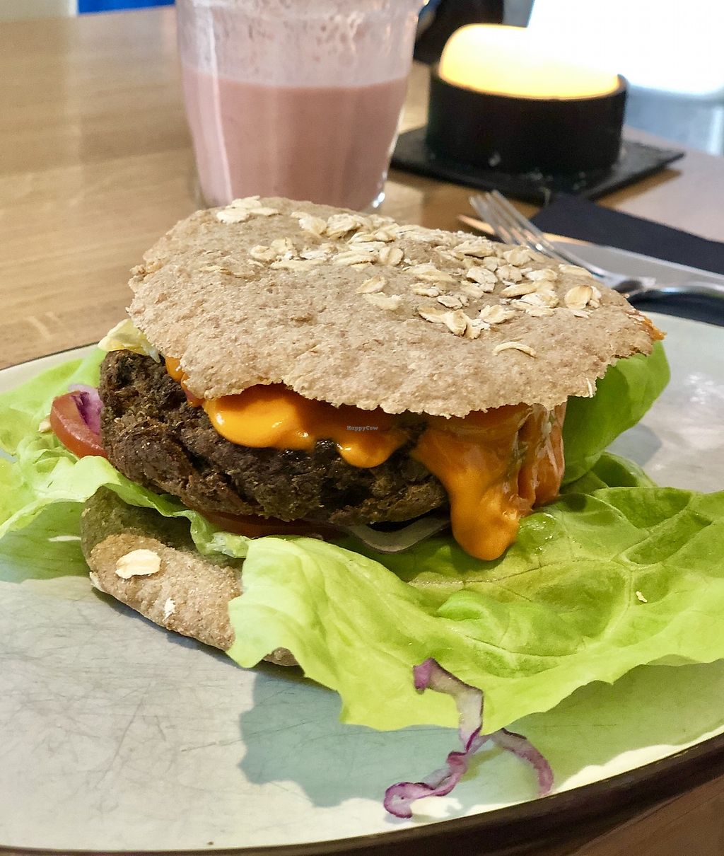 Smørrebrød with tempeh and dessert waffles with cream and berries. SO …