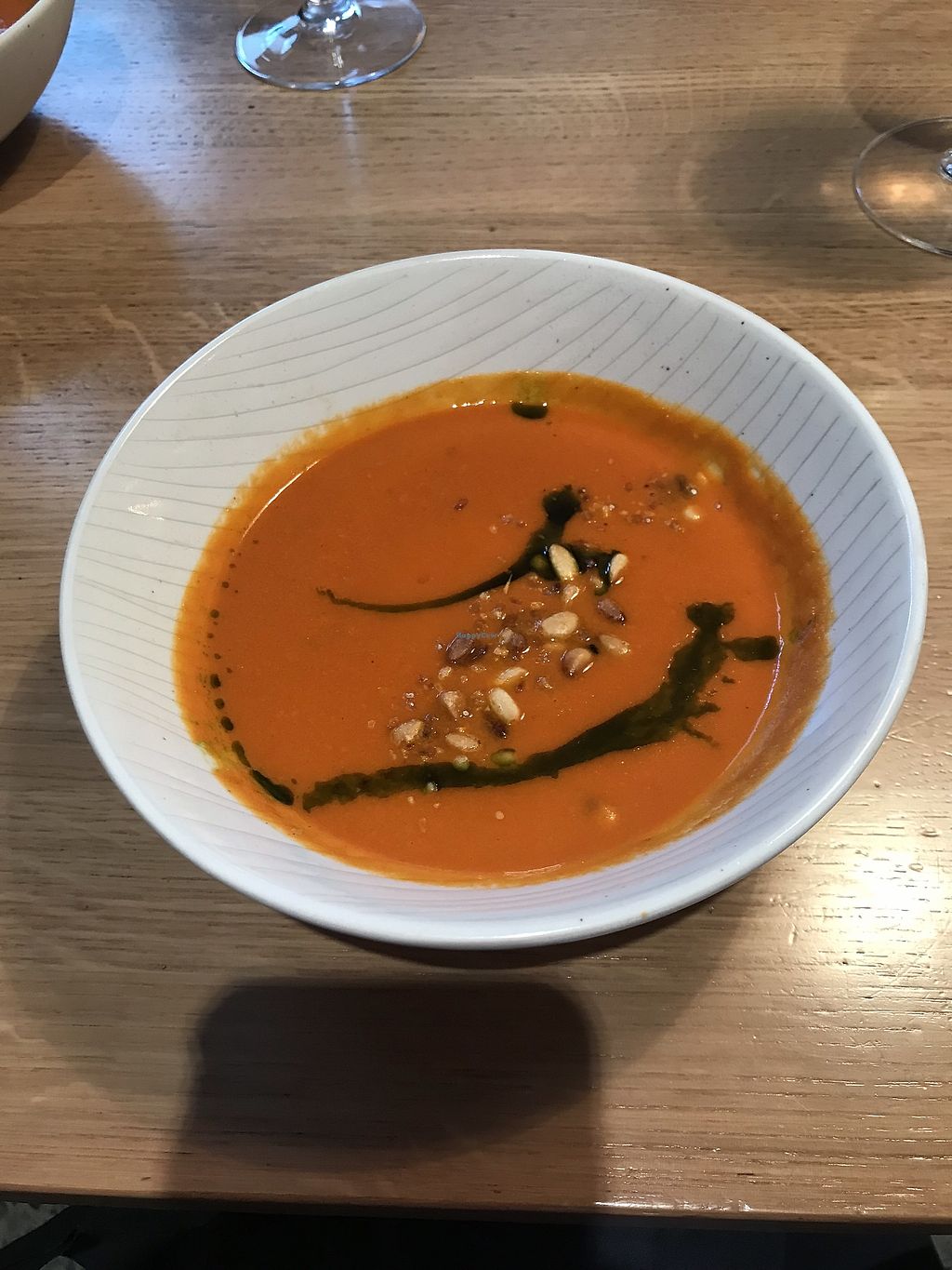 Tomato bruschetta and cheesecake with elderflower and hazelnut