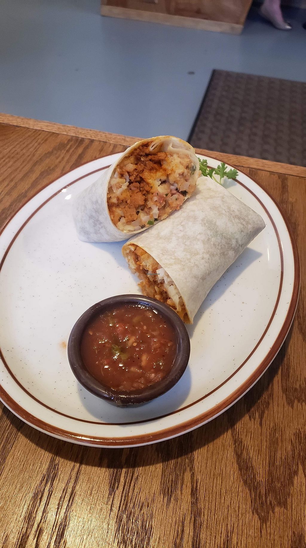 Serves meat, vegan options available. Cafe offering vegan burritos, toasts, waffles and sandwiches. Also serves coffee and tea. Reported closed, Aug 2020.
