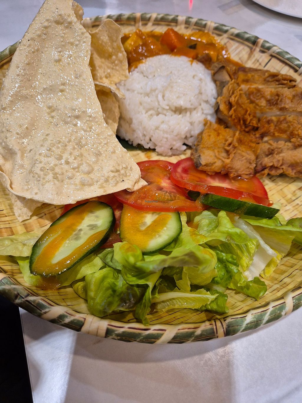 Mamak noodles with fried "chicken" patty
