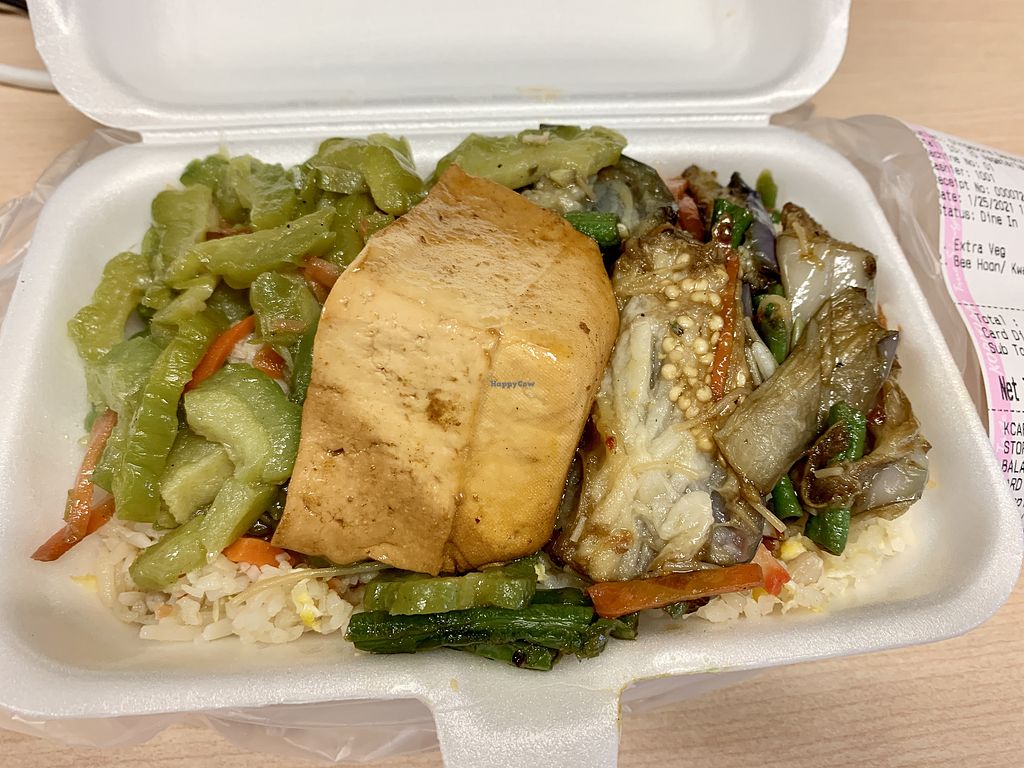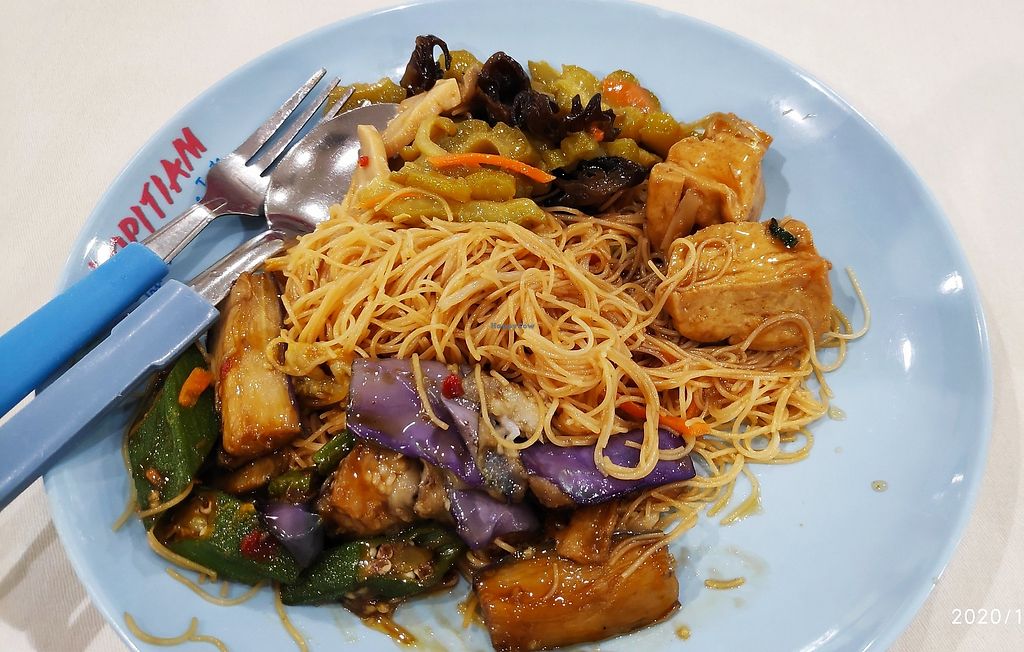 Beehoon with brinjal + ladies finger, tofu and bittergourd