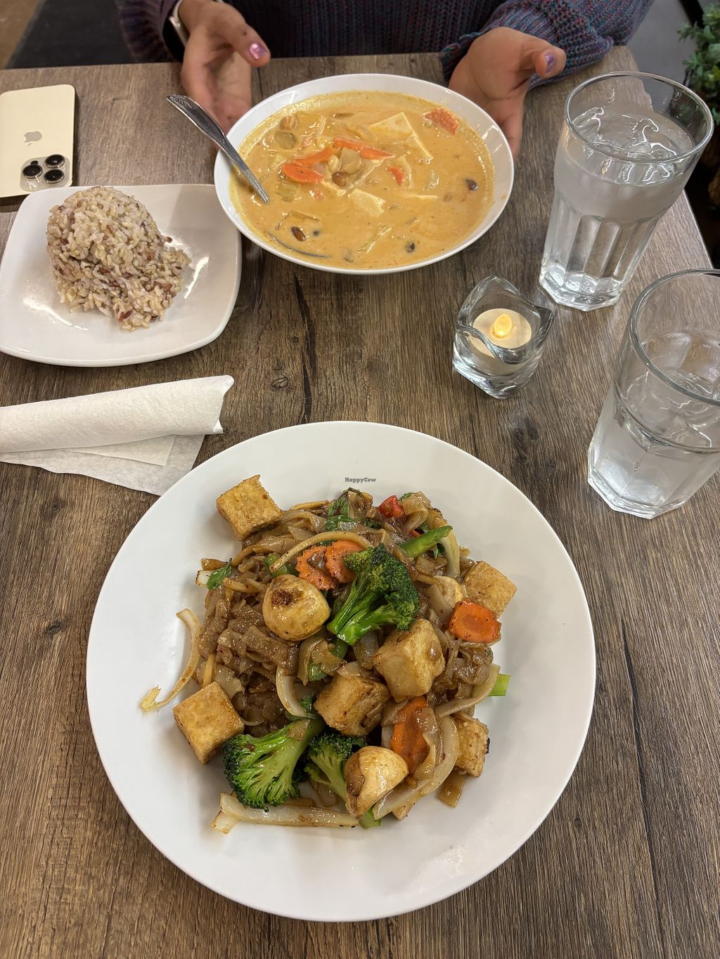 Serves meat, vegan options available. Thai restaurant with numerous vegan choices which may include spring rolls, rice dishes, several curry dishes, several noodle dishes, soups, and salads. Staff is knowledgeable about veganism and assists accordingly. Open Tue-Fri 11:00am-3:00pm, Tue-Thu 5:00pm-9:00pm, Fri 5:00pm-9:30pm, Sat 12:00pm-9:30pm, Sun 12:00pm-9:00pm. Closed Mon.