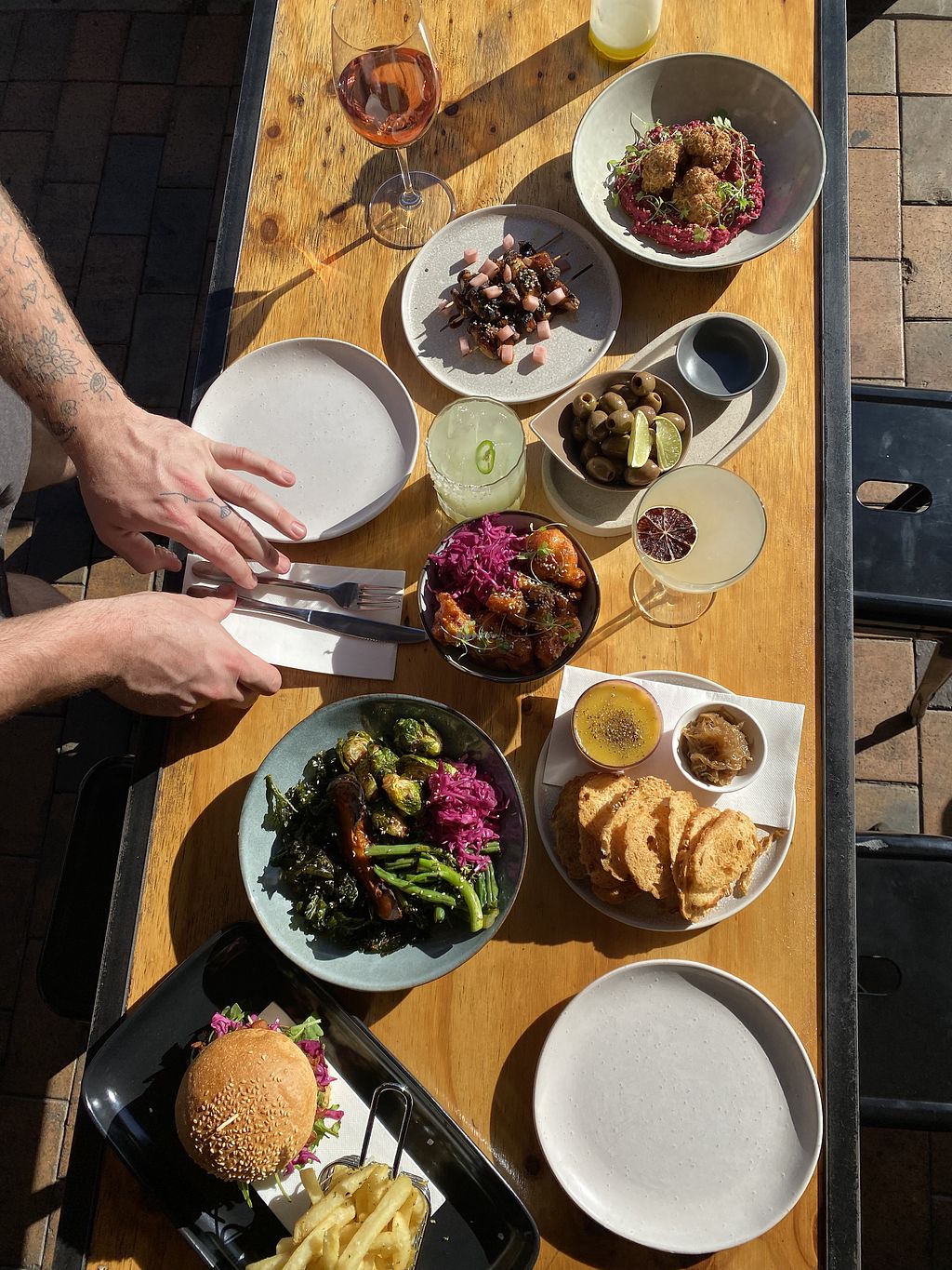 Beetroot hummus, tequila lime olives, yakitori, buffalo cauliflower wi…