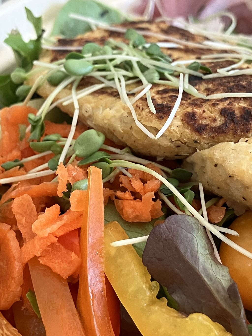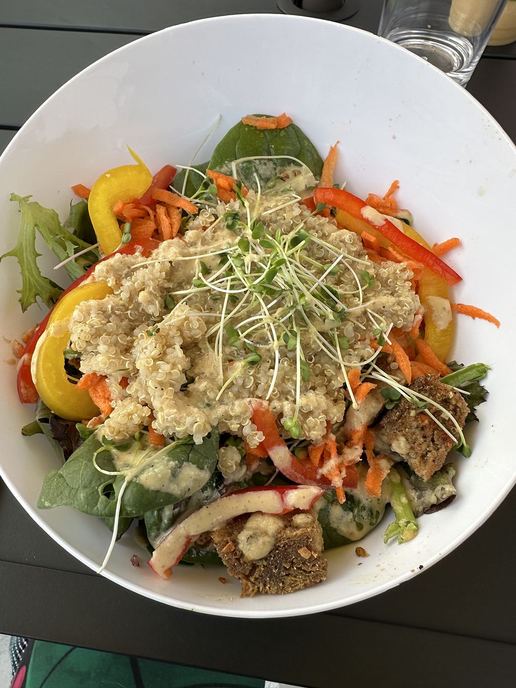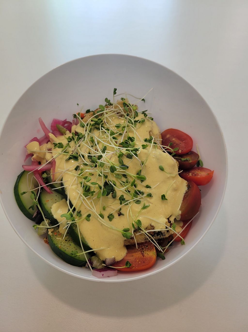 Read moreCute spot with indoor and outdoor seating. The food is delicious! I ordered the Tuno Wrap and the Crabless Cakes Bowl. The wrap is flavorful, clean and filling. The crabless cakes bowl was also refreshingly clean and scrumptious.