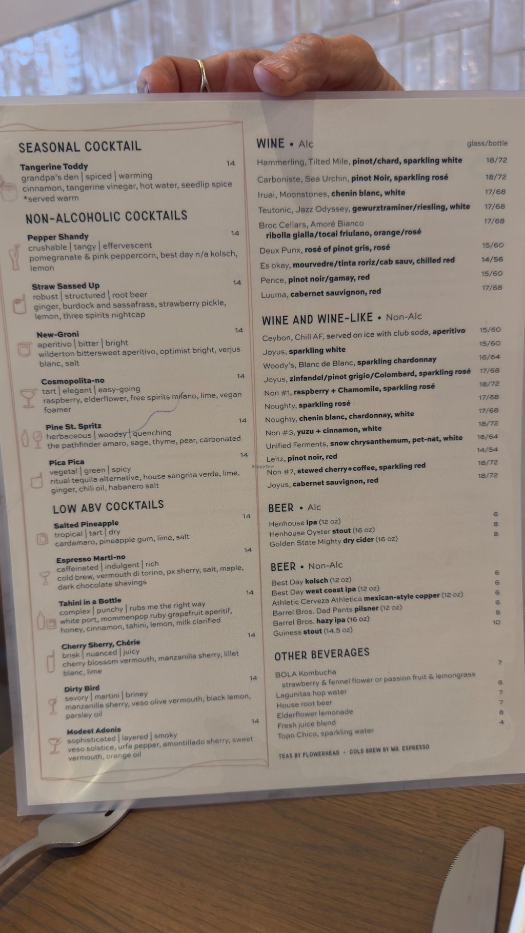 Read moreAlthough there are alcoholic wines and beers, they have an extensive menu of NA beer and wines, along with some great cocktails. I had the Expresso Marti-no cold brew cocktail which was outstanding, great taste and not too sweet.