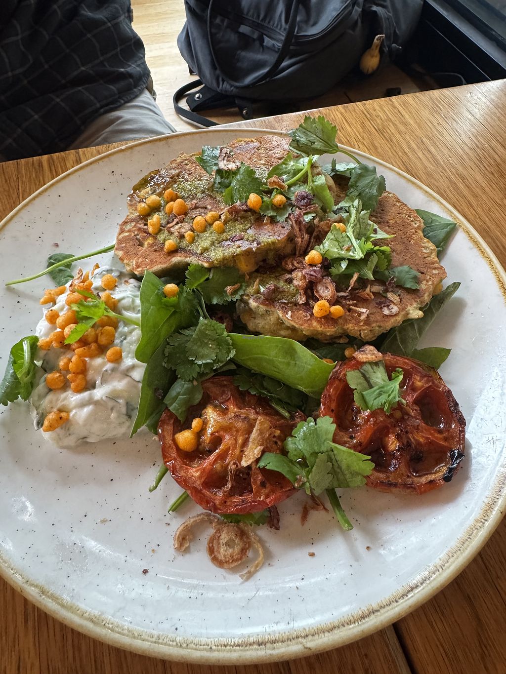 I like the venue and the location, it feels a touch chainy/impersonal but that’s not much of an issue. The menu has lots of varied options, almost all are vegan and caters very well for gluten free if that’s important for you. I had, for the first time Okonomiyaki, can’t compare it to others but I loved it! I had the green sister stir fry and swapped the tofu for tempeh with satay sauce. The portions was really big and plenty filling, I enjoyed every bite. I got a side of kimchi - nice. Lastly I got their summer pavlova which was perfect for the 32 degree heat.
