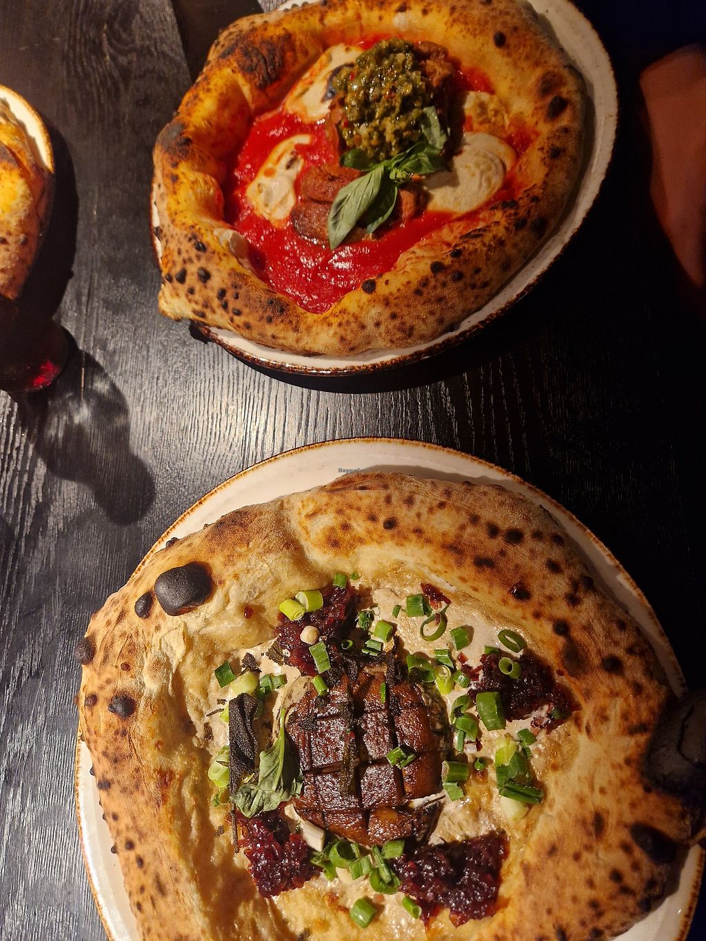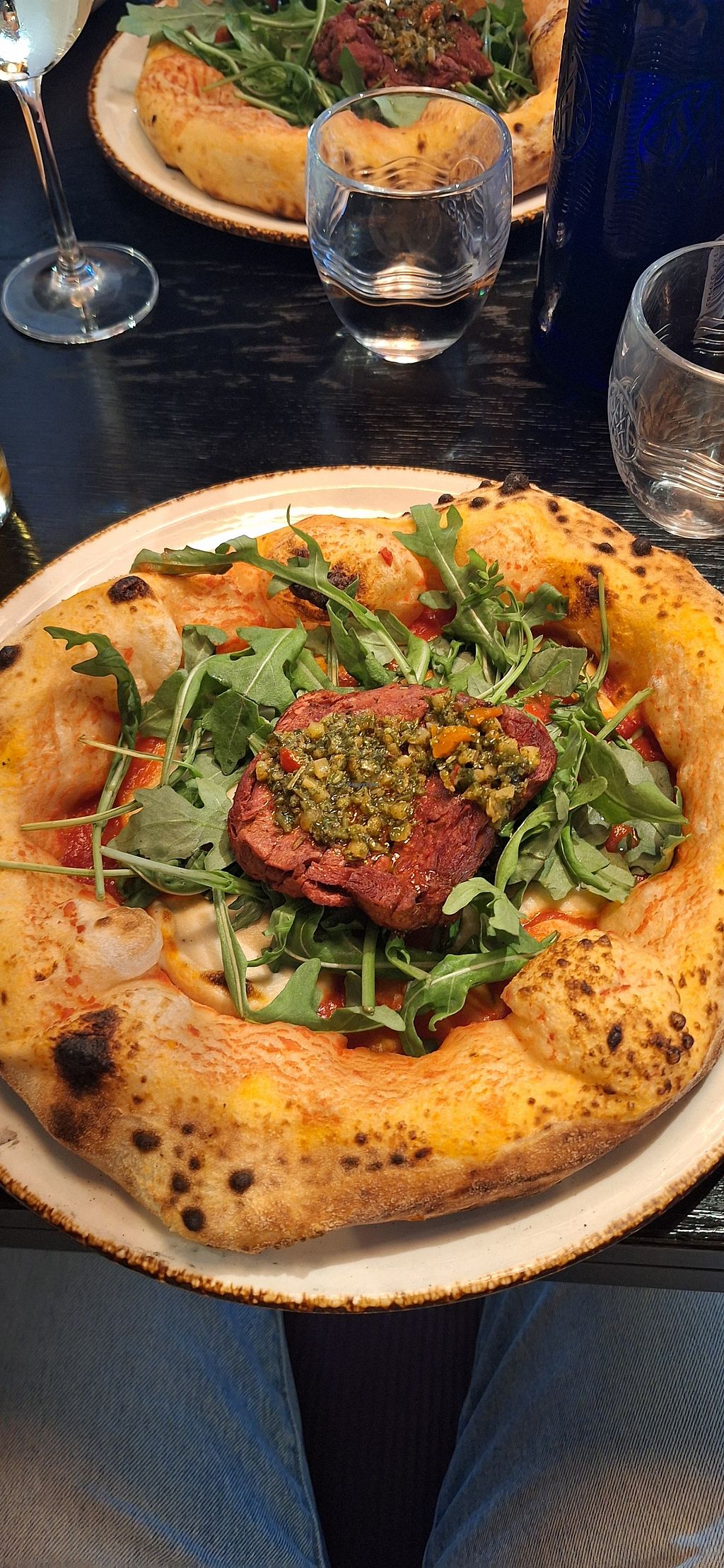 We had the seasonal veggielicious and the vegan beef chimichurri. The vegan mozzarella as well as the planted.steak were phenomenal and paired very well with typically italian pizza dough, which had a thin base and fluffy yet crispy edge. A tad bit pricy but worth it. Ambiente is modern and stylish. Probably a good starting point for a night out in Stuttgart City Center.