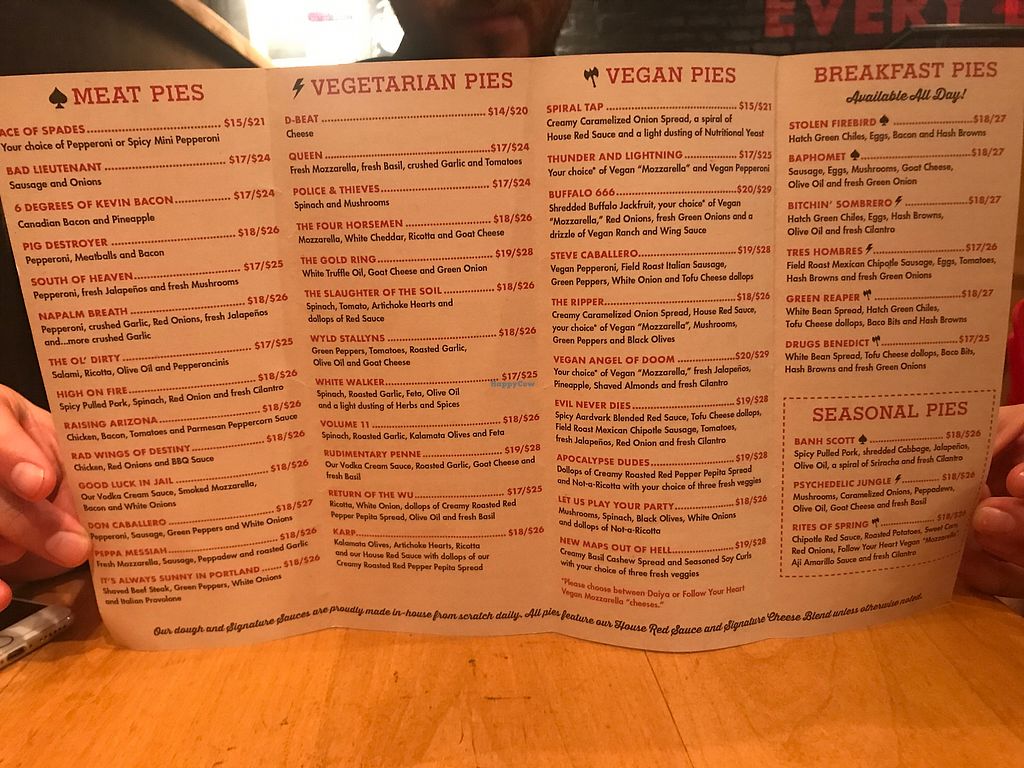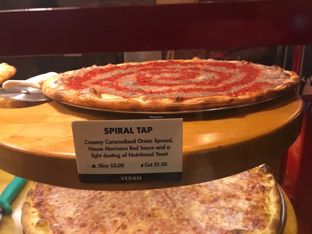 Serves meat, vegan options available. Small pizzeria chain from Oregon. Offers pizza by the pie or by the slice including vegan pizzas and salads. Reported closed, Jan 2018.