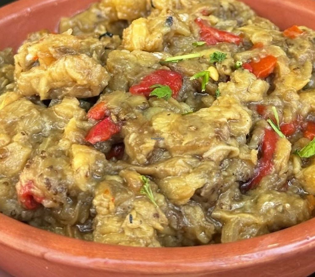 Serves meat, vegan options available. Restaurant offering a few vegan items such as salad, boiled greens, beetroots, garlic dip, fried vegetables, baked butter beans and baked chickpeas. Open Mon 12:00pm-10:30pm, Wed-Sun 12:00pm-10:30pm.