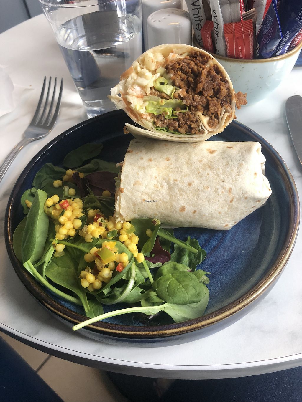 We had vegan pork wrap with side salad and orange polenta cake. All tasty and delicious if a bit pricey. Online vegan menu is no more but there are well marked vegan options on the main menu. Maybe that gets normals to eat plant based??? Busy wee place but plenty of seating and a car park. Presumably all home made as it’s also a bakery.